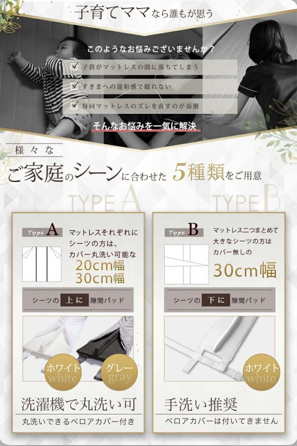 【商品構成】隙間パッドおよびマットレス固定用バンドのセット商品です。