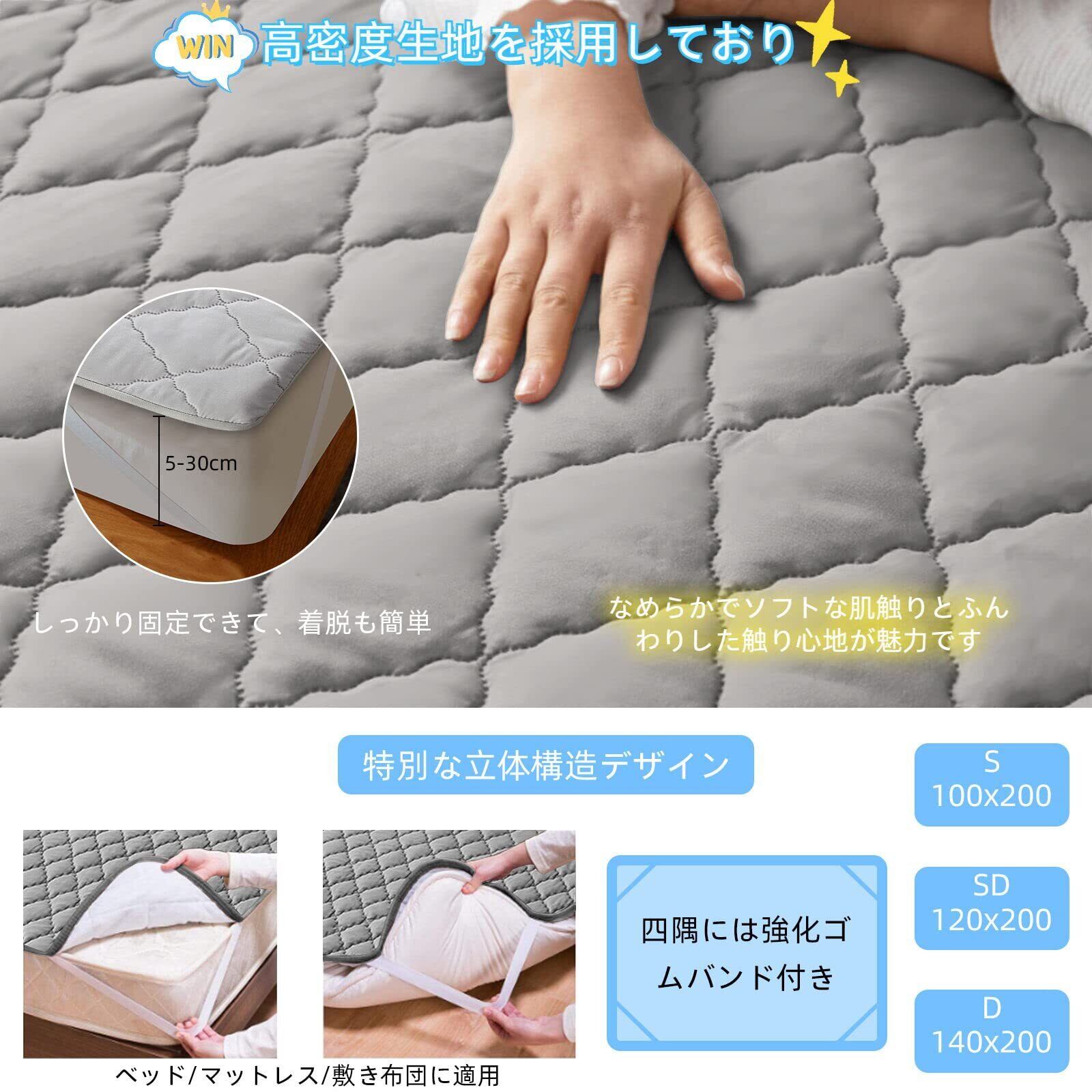 高品質のデザイン:3D立体構造防水ベッドパッドの縫製は、高品質中空ポリエステル100%,どんなに眠り癖に対策できます。無地色と花柄のキルティング波が菱形のようなキルティングは特色です。は快適で通気性のある生地で作られており、高ロフト気候繊維のプレミアム キルティングが施されており、健康的な睡眠環境を提供します。敏感肌の方や子供でも安心にご使用いただけます。それで、このような工芸で作った敷パットは抜群な吸水性と通気性も備えます。汗の季節も冷える季節もオールシーズン活躍してくれる敷きパッドです。