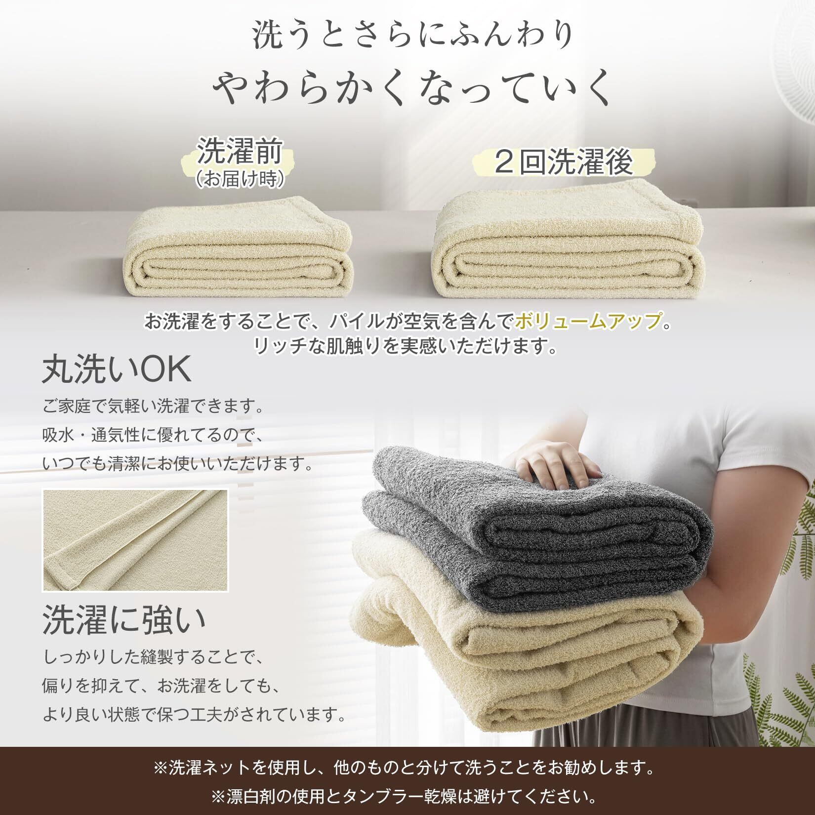 【一年中使えるほどよい厚手感】適度な厚さでふんわりと肌を包み込みます。適度な弾力とボリューム感を兼ね備えており、シーツとして敷いても、かけ布団としてもお使いいただけます。素肌で心地よさを実感できる寝具として、オールシーズンおすすめです。【様々なシーンに活躍】日常生活のさまざまなシーンで活躍するタオルケット。用途や家族の人数に合わせて、色違いで揃えるのもおすすめです。