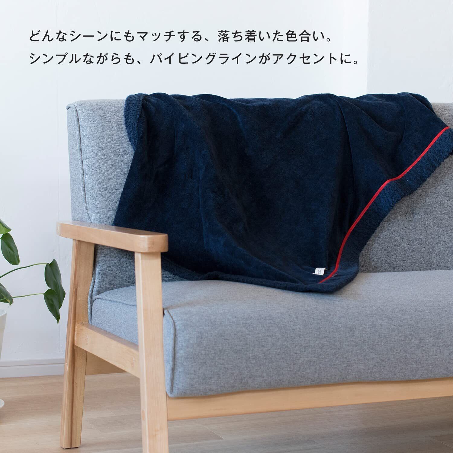 ブルーム 今治産 ひざ掛け ブランケット アヴニール 約98×70cm 日本製 綿100% 洗える リバーシブル シープ加工 ひざかけブランケット (ネイビー)