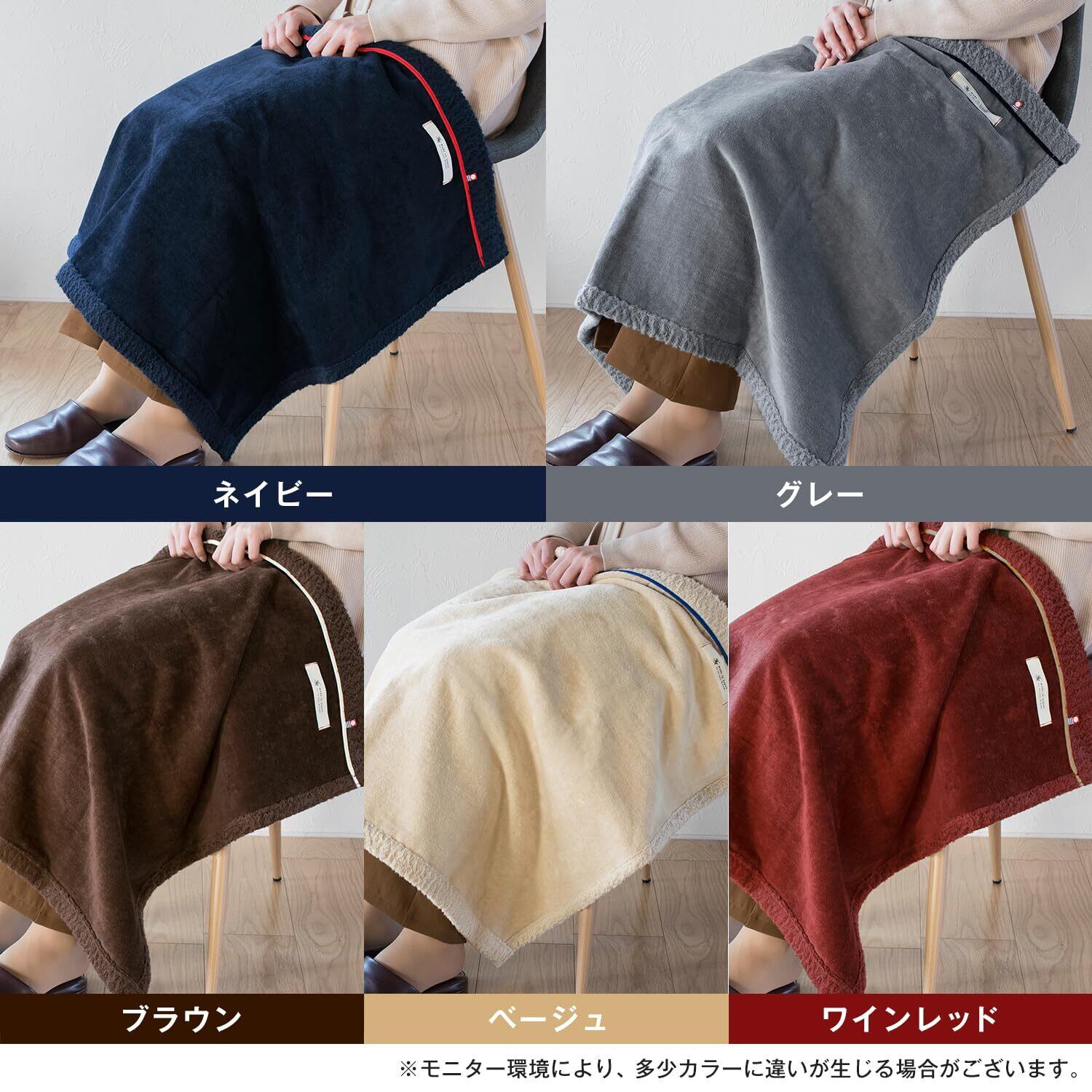 【2022最新】ブルーム 今治産 ひざ掛け ブランケット アヴニール 約98×70cm 日本製 綿100% 洗える リバーシブル シープ加工 ひざかけブランケット (ネイビー)