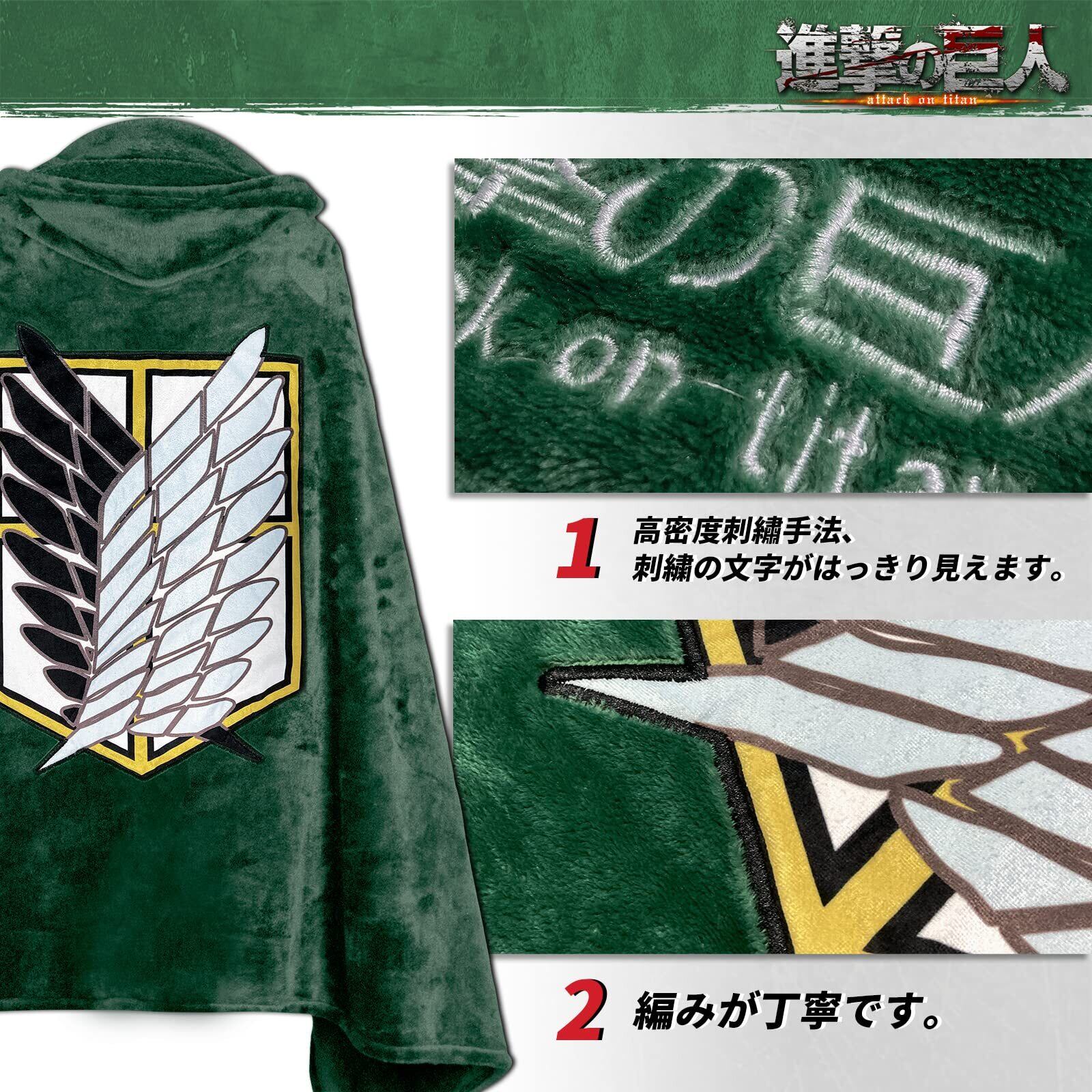 【在庫セール】DIROLVON 進撃の巨人 着る毛布 ブランケット フード付き 刺繡スタイル 肩掛け 着脱が簡単 冬に ルームウェア 暖かい ふわふわ 可愛い おしゃれ クリスマス ハロウィン 仮装 記念撮影 グッズ (M)