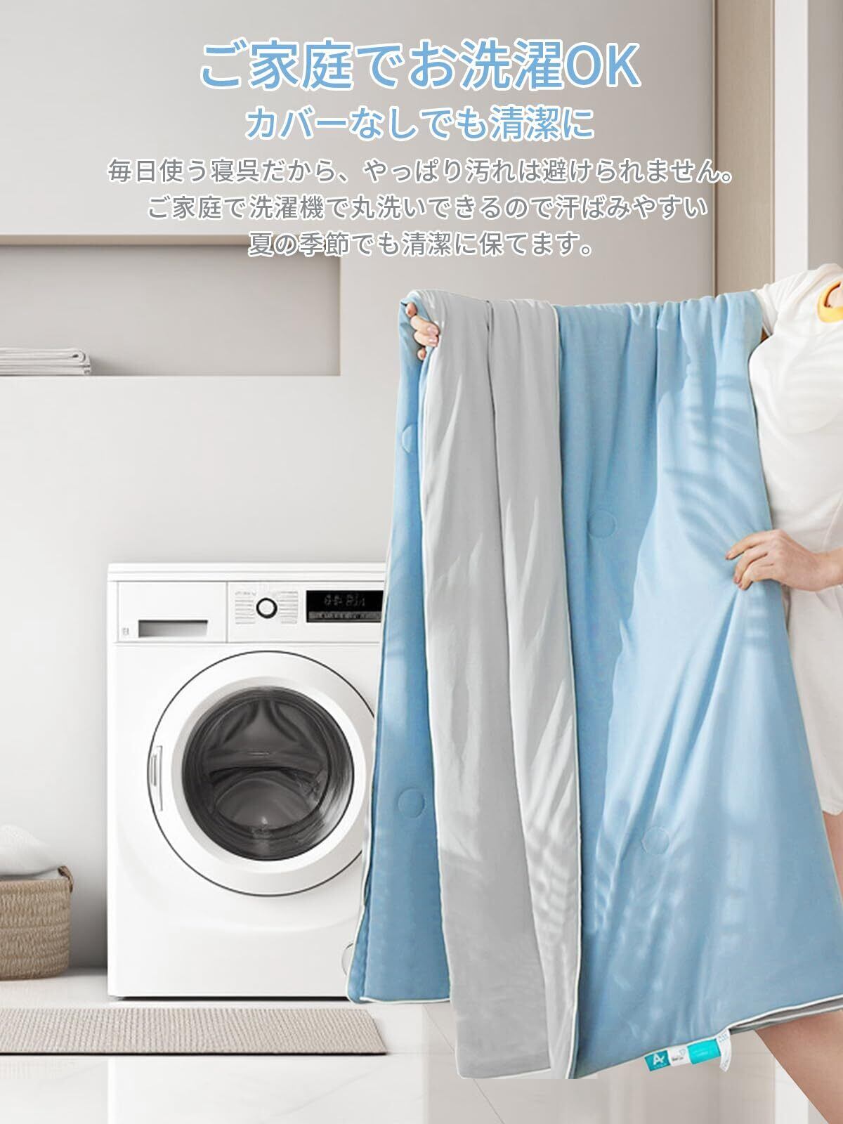 【商品仕様】[サイズ]:150×200cm [生地]:95%凉感ポリエステル+5%ポリウレタン [中綿]:ダウンのような綿100% 生地が肌に優しくなっていて、暑い夏でも清涼感を感じながら快適な寝心地をサポートできます。