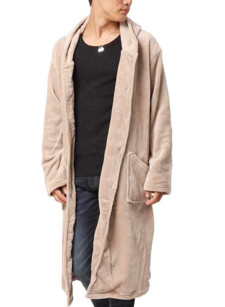 着る毛布 もこもこ ルームウェア メンズ 冬 ガウン マイクロべロア フリース カーディガン あったか おしゃれ 秋冬