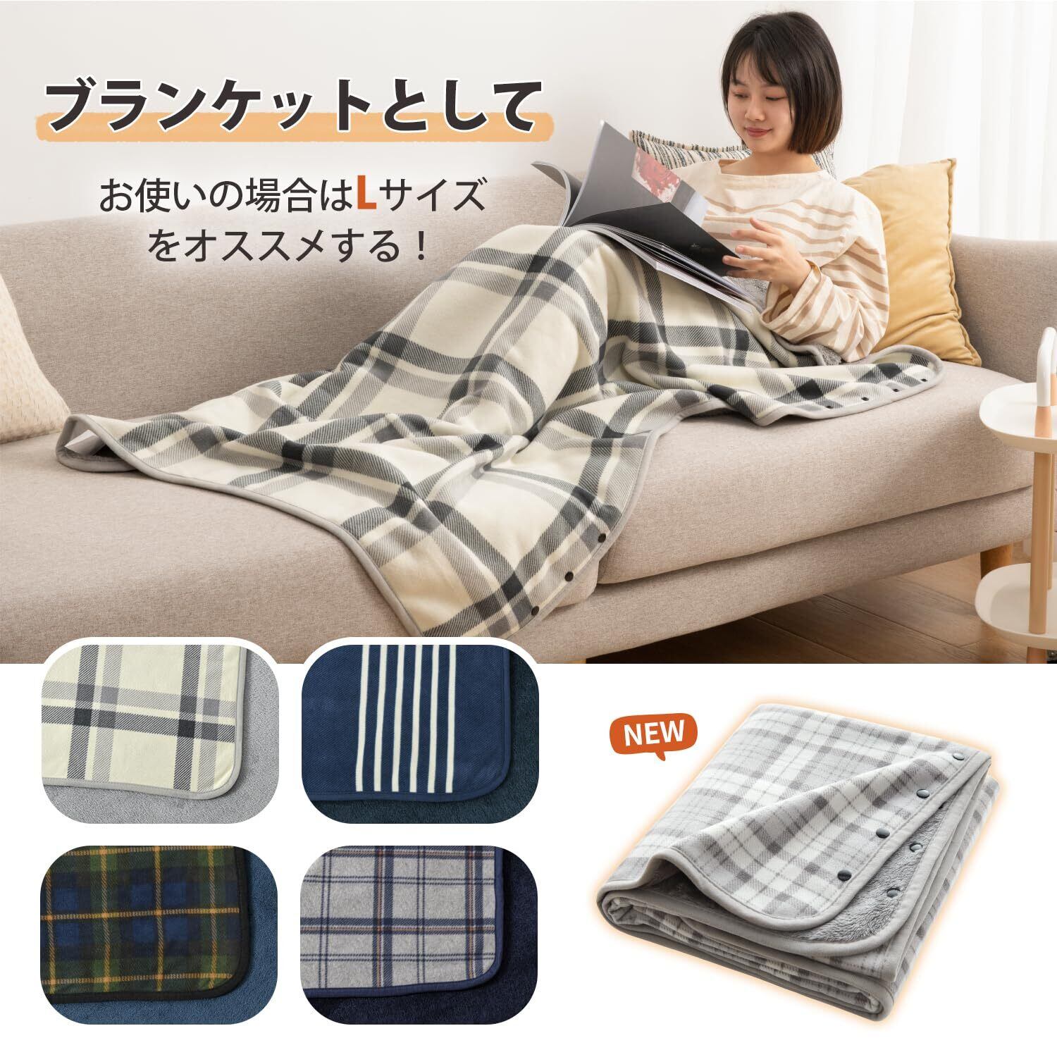 【多機能毛布・スナップボタン付き】ひざ掛けとしてだけではなく、肩かけ毛布、巻きスカート、アウトドアブランケット等様々な使い方で利用できる。