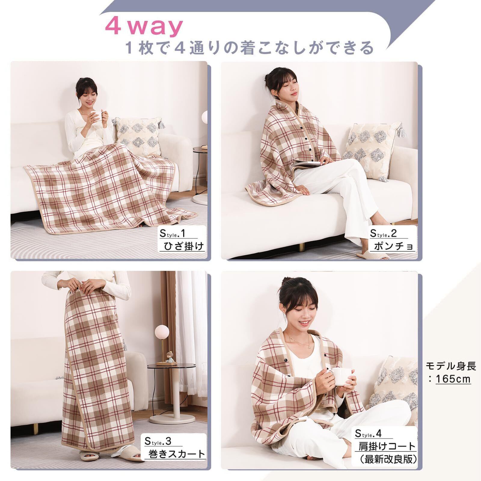 HAPGO ひざ掛け ブランケット 大判 選べる5色2サイズ 4way 着る毛布 ボタン付き 改良 防寒対策 あったか チェック柄 おしゃれ 吸湿保温 抗菌加工 静電気防止 洗濯可能 手触り 家·オフィス·アウトドア·車·出張 などに適用 通年使用 (Mサイズ(80×135CM), ベージュ)