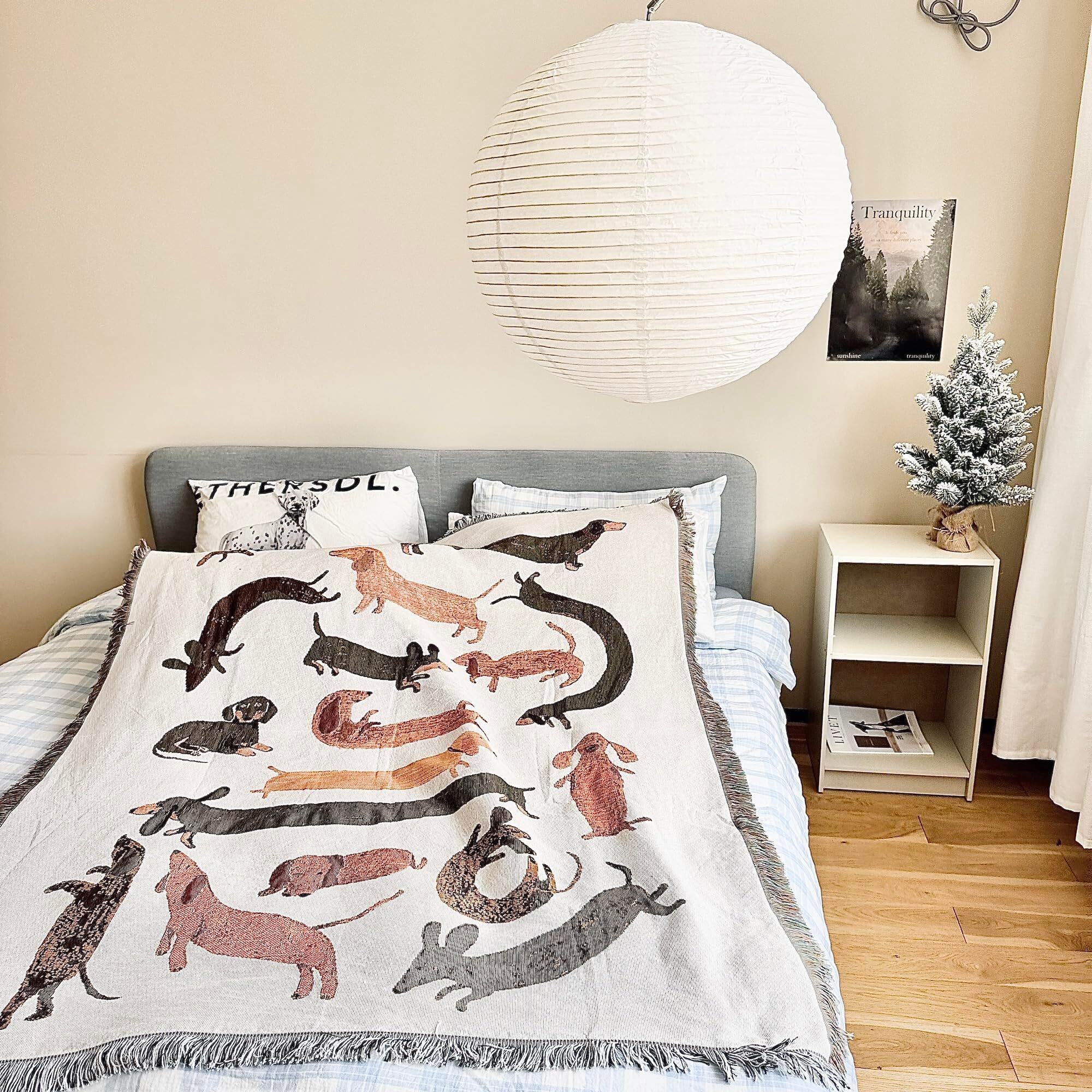 面白い柄,ダックスフント, ベージュ,可愛い おしゃれ マルチカバー ブランケット ,ソファーカバー,ベッドカバー (130X160cm)