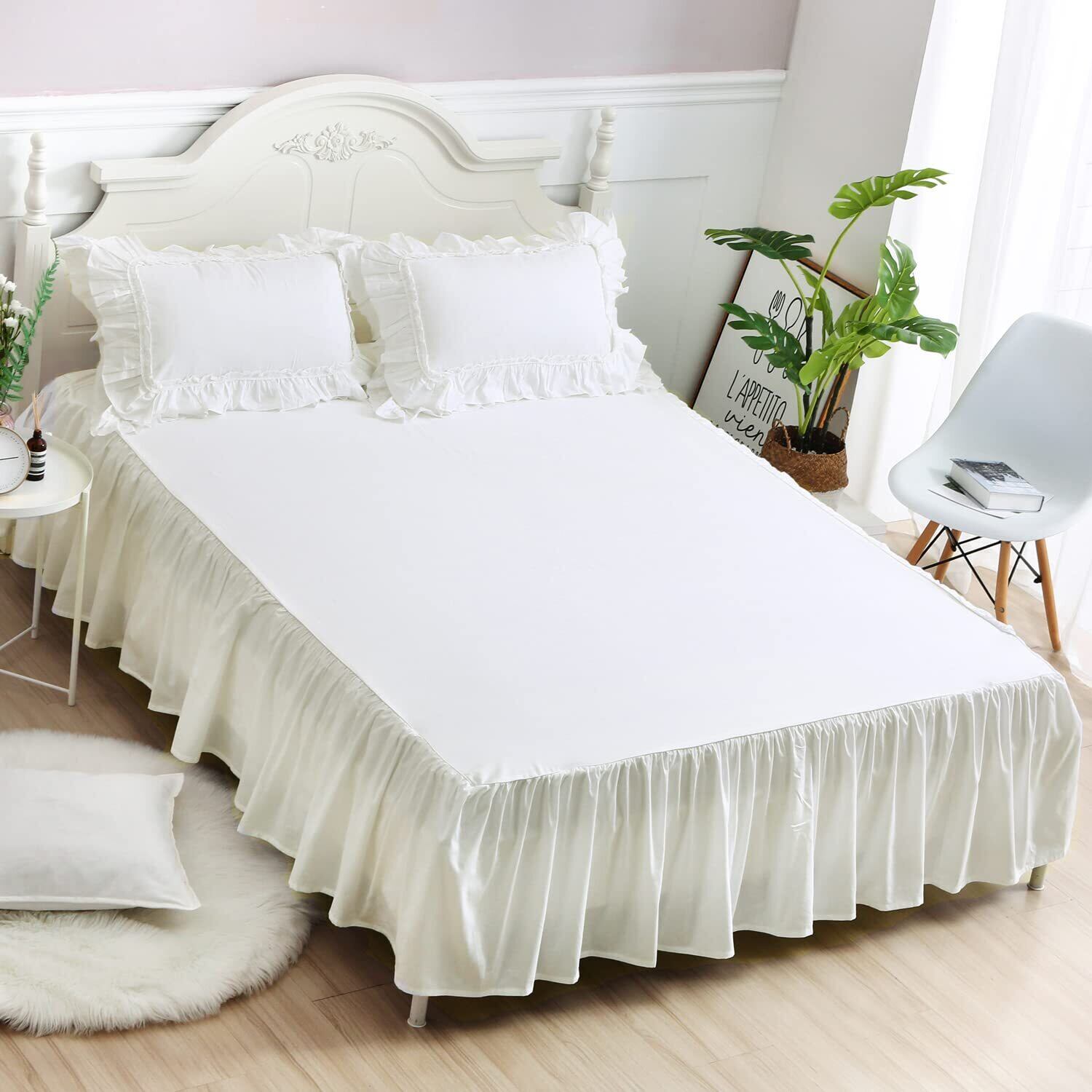 無地 ベッドスカート ベッドシーツ マットレス敷きカバー 肌に優しい ベッドスプレッド フリル 寝具カバー 敷きシーツ コットン 高通気性 耐久性 丸洗いok オールシーズン ベッドカバー オフホワイト 100*200*43㎝ シングル