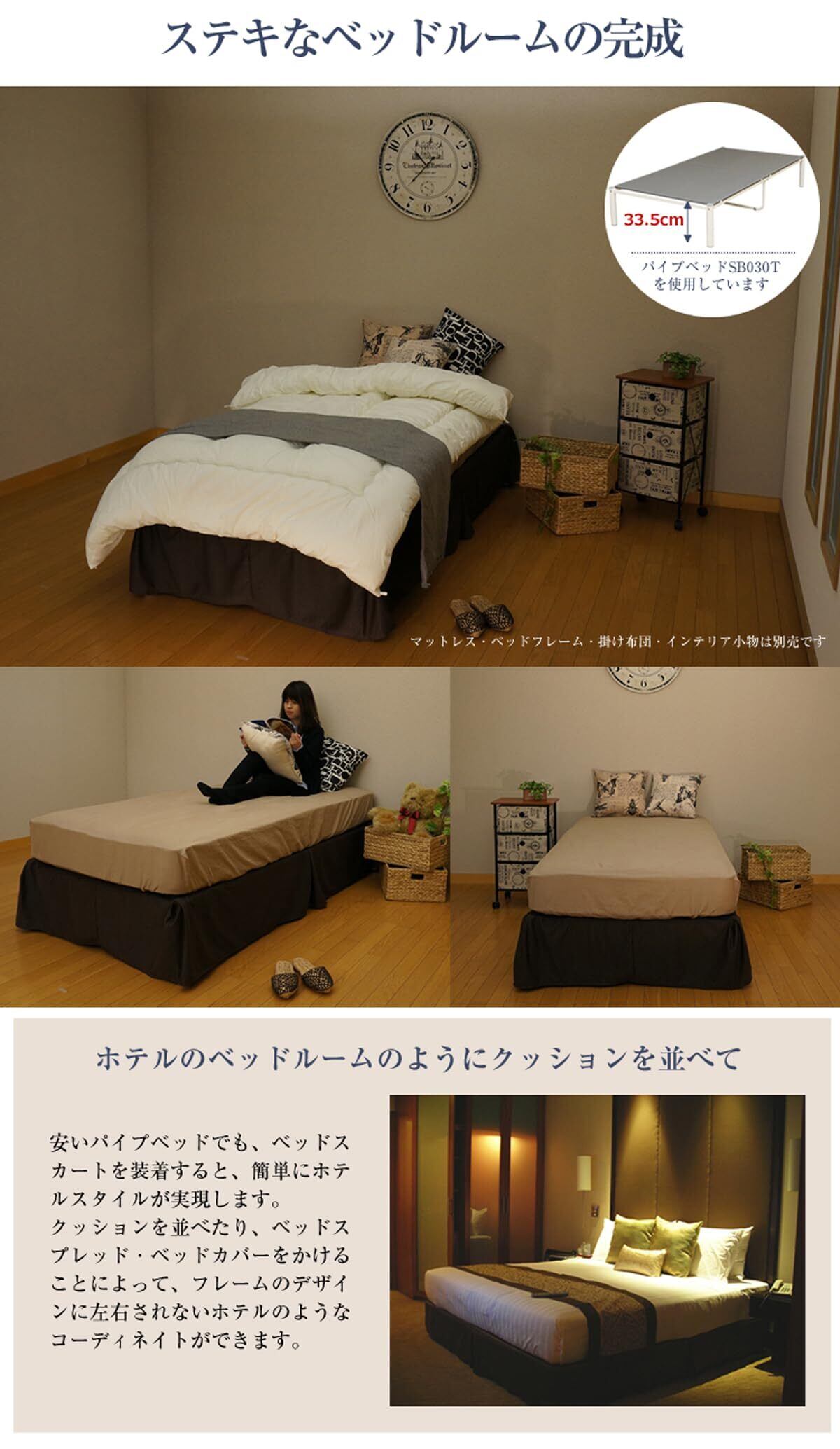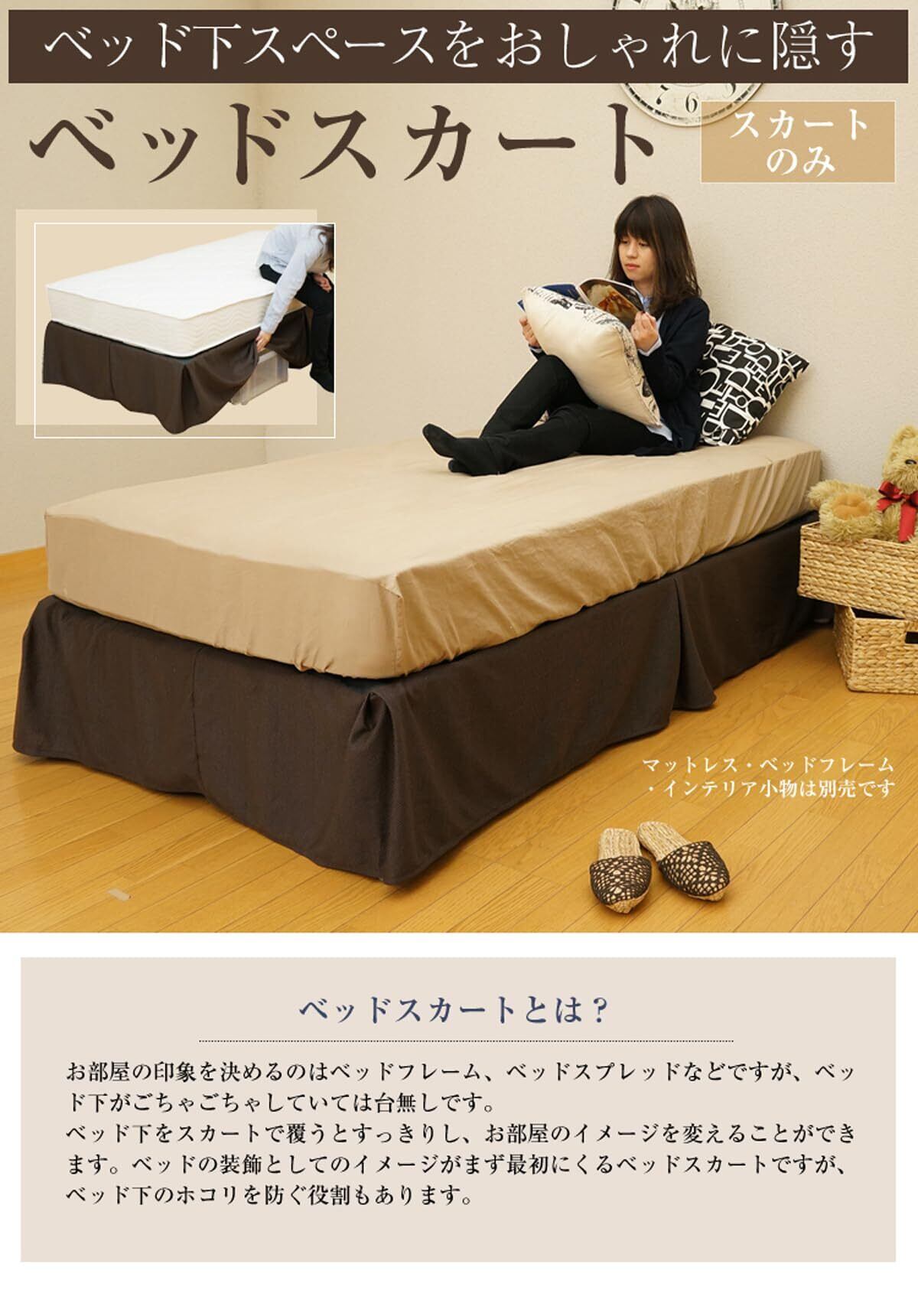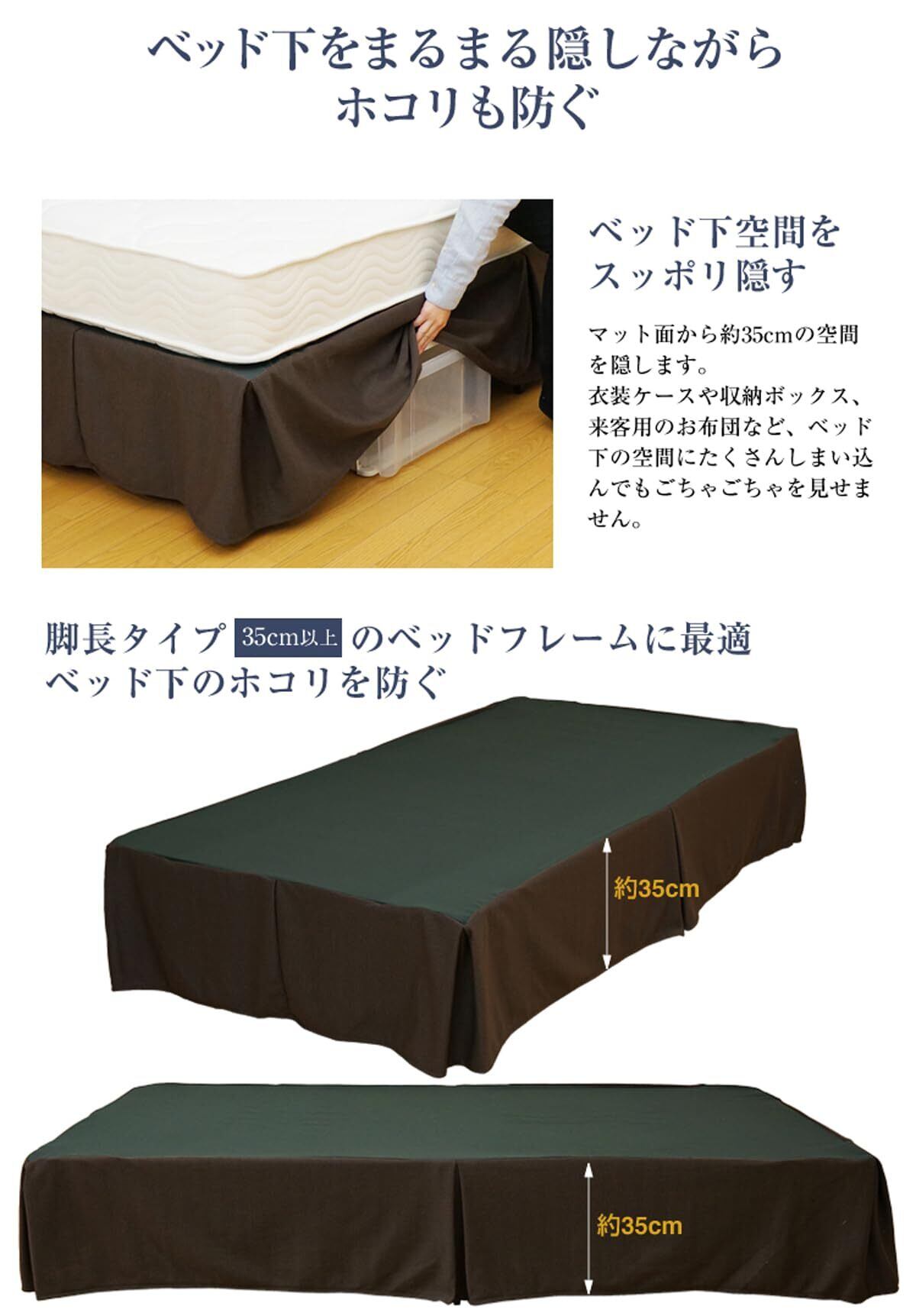 ベッドカバー ベッドスカート ベッド下収納を隠す 寝室インテリア お手軽ホテルスタイル シングル(幅97cm) ブラウン