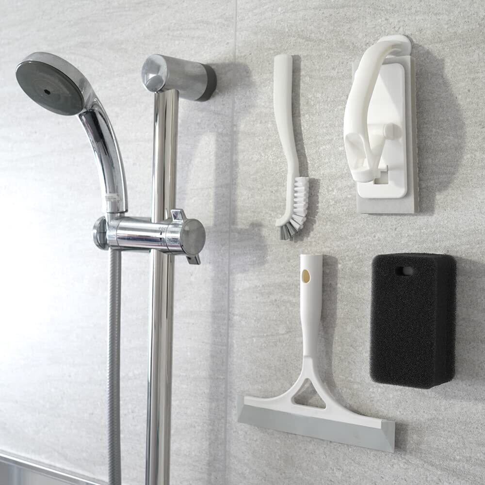 【壁や洗濯機にピタッ!】しなやかな水切りゴムが壁面・曲面にフィットして水気をスッキリ除去します。おそうじ後は浴室の壁に磁石でピタッと貼り付くので、場所を選ばず衛生的に収納できます。 ※鋼板を使用していない壁、タイルなど磁石がつかない浴室の壁面には貼り付きません。