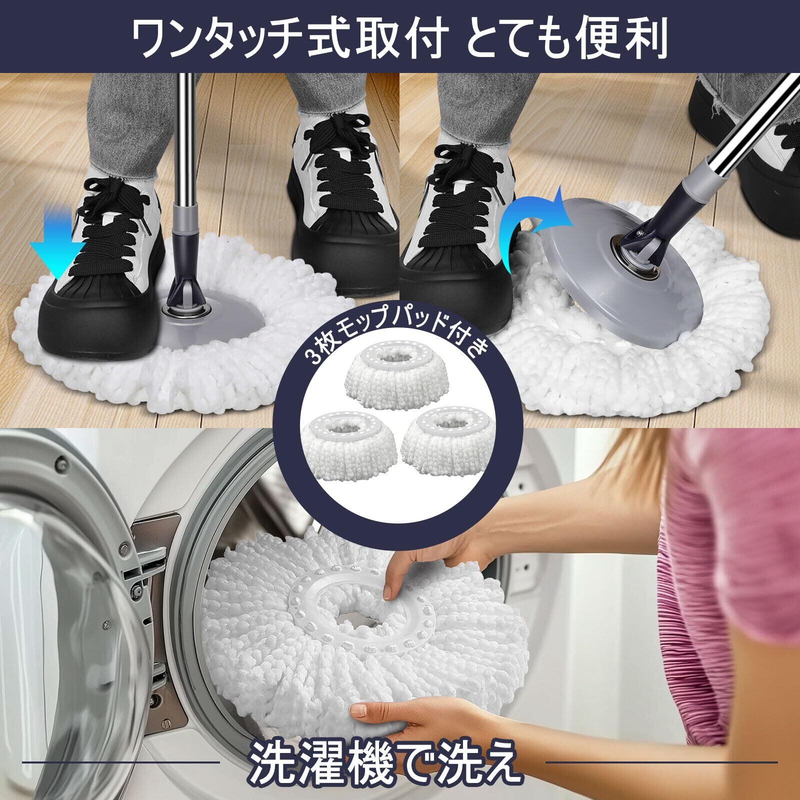 乾湿両用:モップパットはマイクロファイバー素材を採用され、柔らかくて吸水性や耐摩耗性等にも優れ、床面を傷つけずキレイに掃除できます。洗濯機で洗え、取り付けも簡単、繰り返し使用可能の3枚付き。