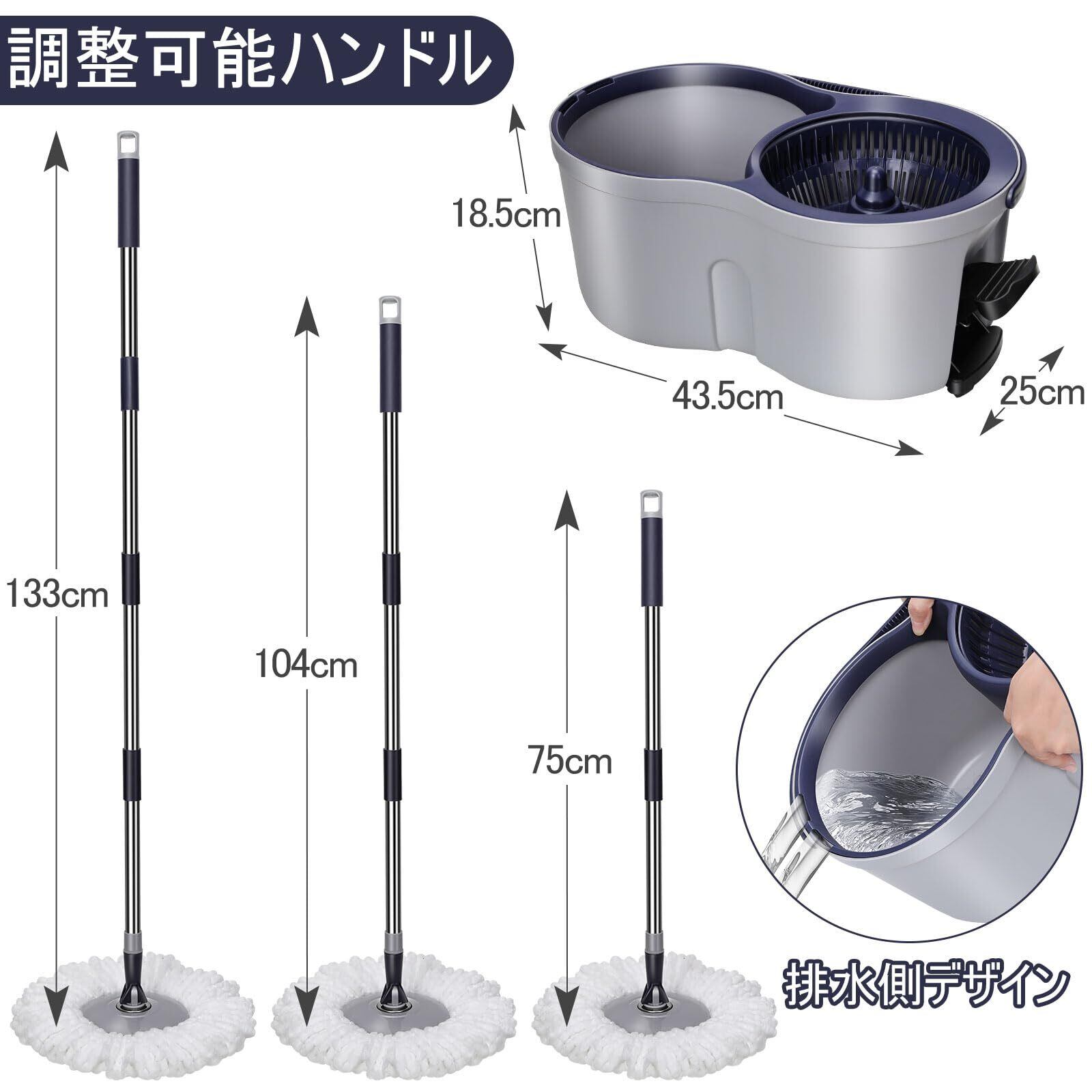 Masthome 回転モップ バケツセット フロアモップ 足踏み 絞りモップ 乾拭き 水拭きモップ フロ-リングワイパー 床掃除 業務用 家庭用 掃除道具 手洗い不要 腰曲げず 3枚交換用パッド付き