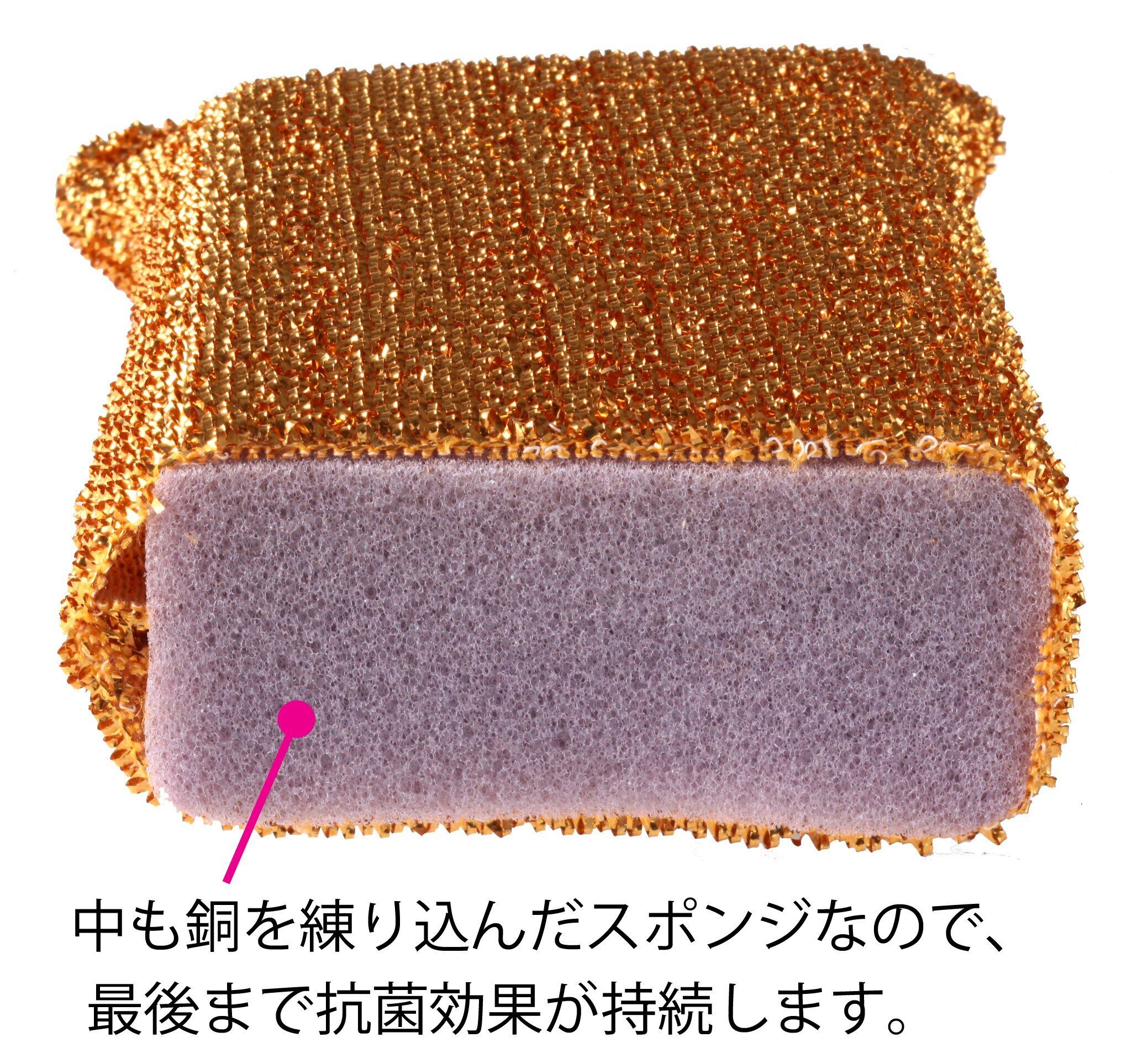 銅の抗菌効果で雑菌の繁殖を防ぐバススポンジ。