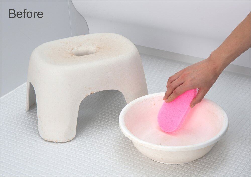 水に濡らして、こするだけ 水に濡らして、こするだけで湯アカをしっかり落とします