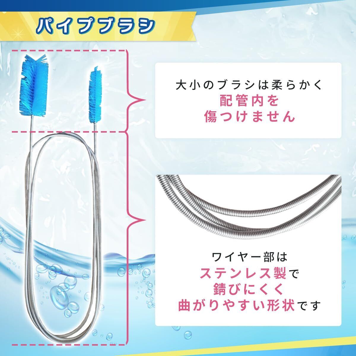 大小パイプクリーニングブラシ】:このクリーニングブラシのワイヤー部は高品質のステンレス鋼で作られており、耐水性、柔軟性に優れています。 狭い排水管内の頑固な残留物や藻などの清掃にご利用いただけます。大小のブラシは管の大きさに合わせて水槽、給水ポンプ、フィルター、コネクター、パイプ、シャワー排水管、その他のパイプの洗浄にご利用いただけます。