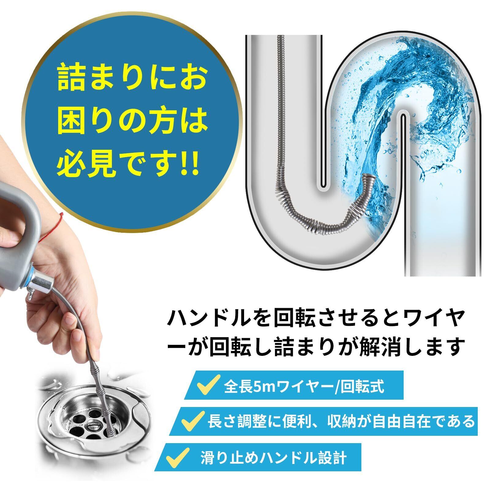 【専門家が推薦】 パイプクリーナー ワイヤー 回転式 排水管 排水溝 つまり ワイヤーブラシ 5m 排水溝 詰まり 解消 洗浄 掃除 家庭で使える 業務用清掃ブラシ 手袋 保管袋 スポンジ付き