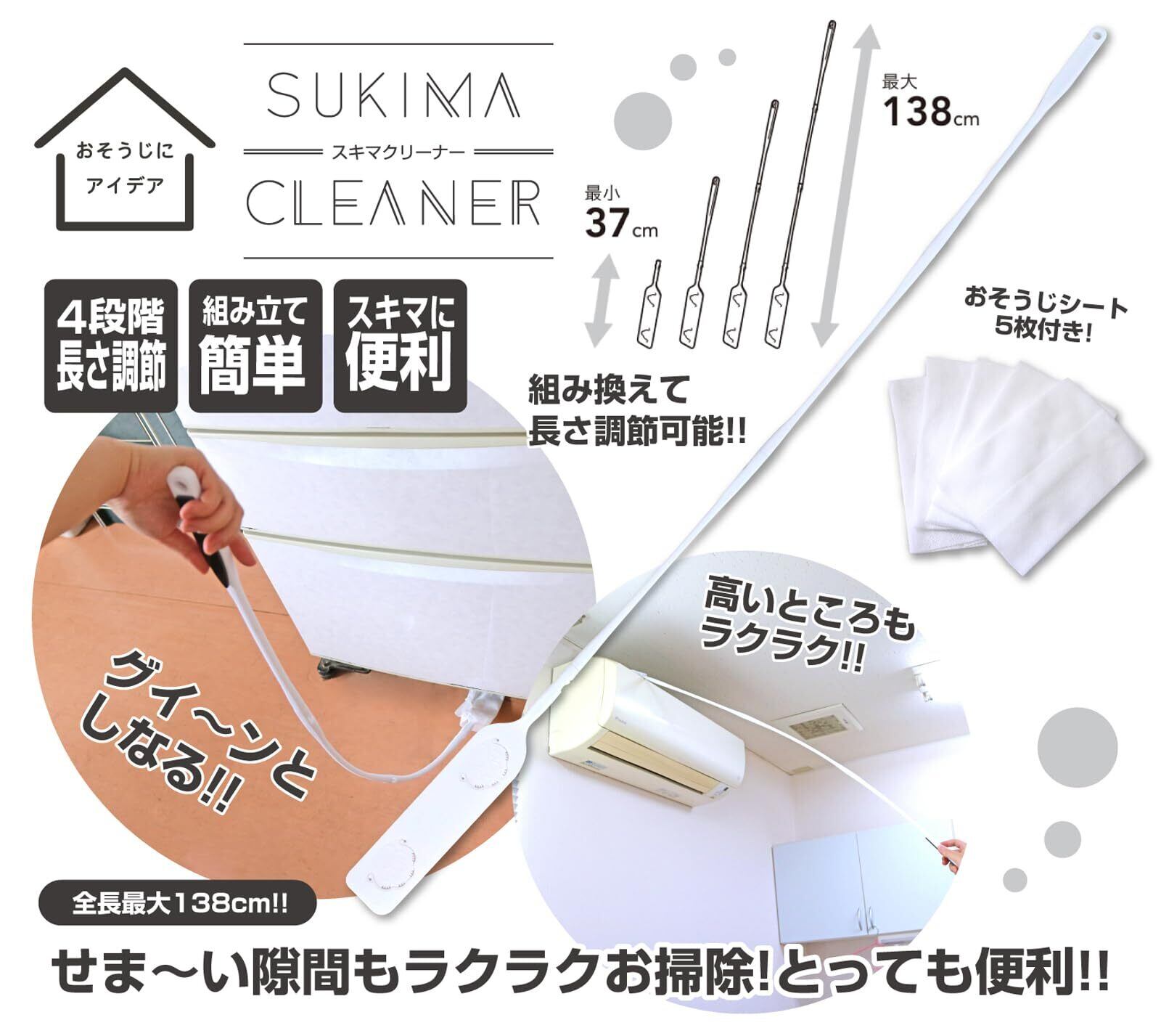 【数量限定】トレードワン(TRADE ONE) スキマクリーナー 隙間ブラシ 全長138cm 長さ4段階調節可能 エアコン掃除ブラシ 隙間 溝 掃除グッズ 30889
