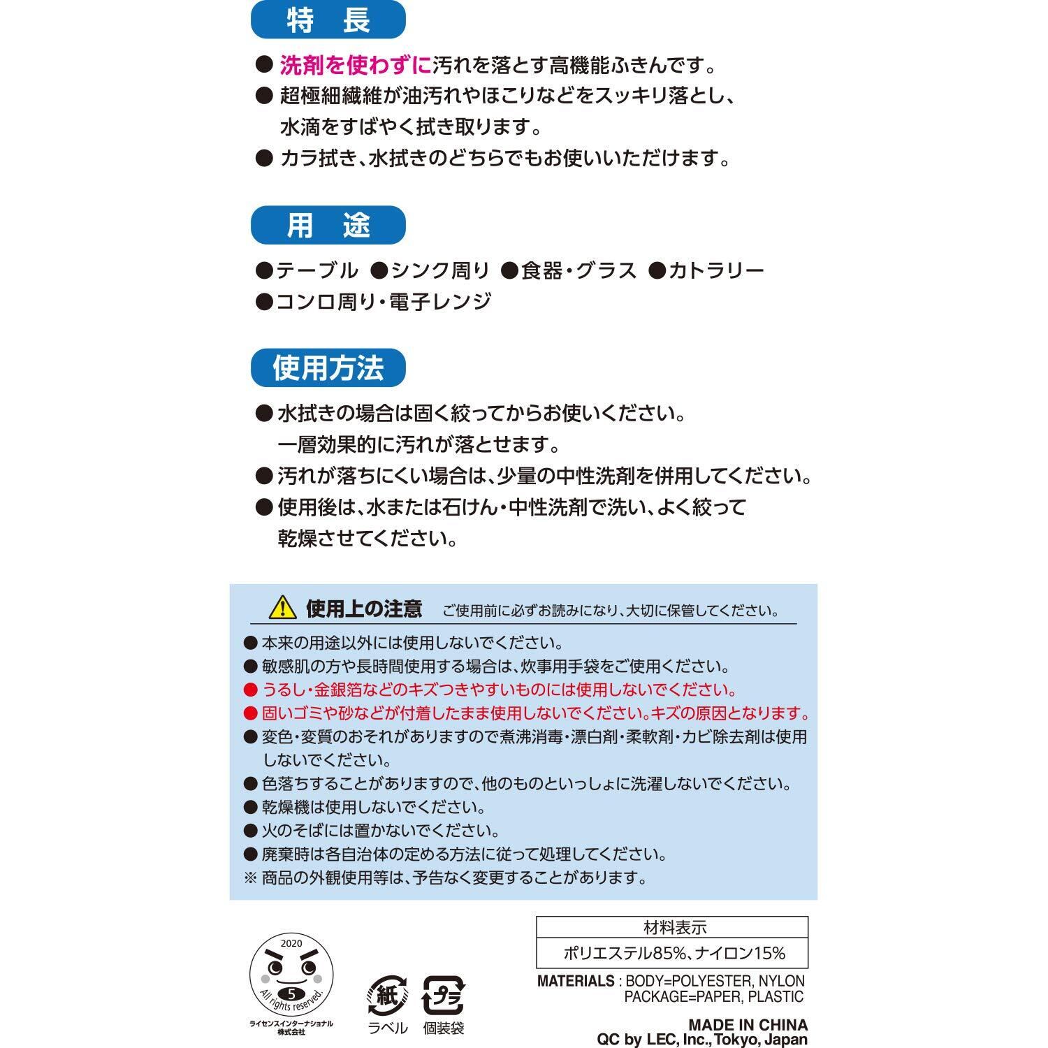 ●洗剤を使わずに汚れを落とす高機能クロスです。●マイクロファイバー(超極細繊維)の多角形の鋭いエッジが、汚れをしっかりこすり落します。●立体構造繊維なので、吸水力・吸油力がバツグンです!●ミクロ繊維だから、落とした汚れを残さず繊維内に取り込みます。●カラ拭き・水拭きのどちらでもお使いいただけます。●フチ部分はヒートカット(熱処理)されているので、ほつれにくく、フラットで使いやすい形状です。●家電製品や家具、窓ガラス、フローリングなどのリビング掃除。キッチン汚れにも適しています。●大容量10枚入り。かわいいグリーンと落ち着いたベージュの2色セットです。