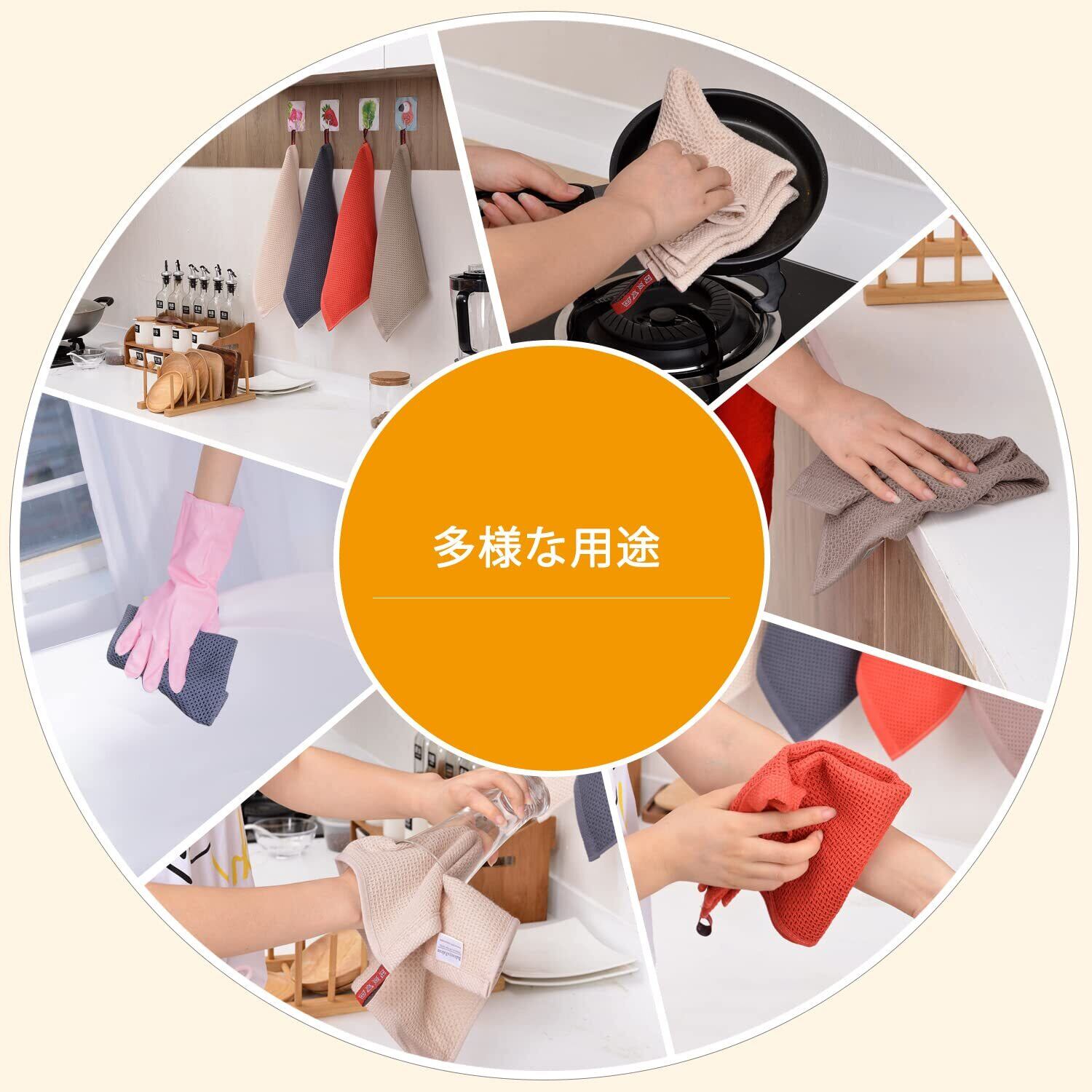 【強力に汚れを取り除く】ワッフルハニカム設計、表面立体、また、選択された糸の表面はよりテクスチャがあります。そのため、LUOLUOキッチンタオルの表面は汚れとの接触が強く、汚れを取り除きやすい。