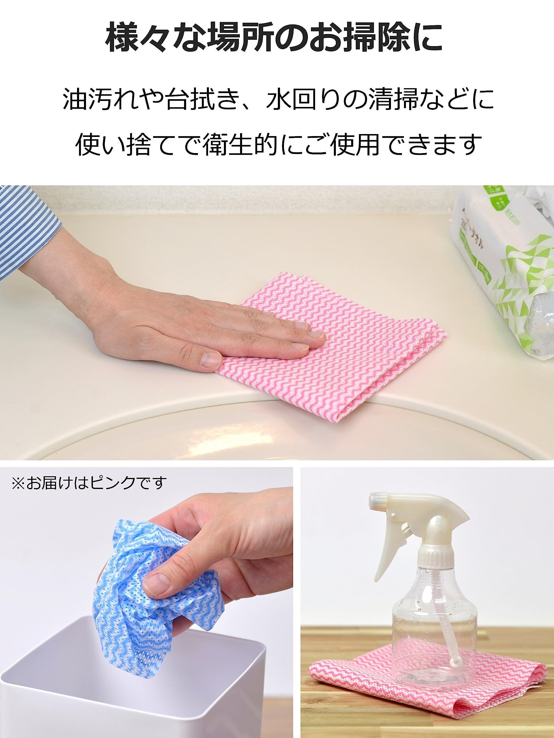 大和物産(Daiwa Bussan) カウンタークロス 厚手 80枚 ピンク 約60×30cm 使い捨て 不織布 ふきん テーブルダスター 業務用