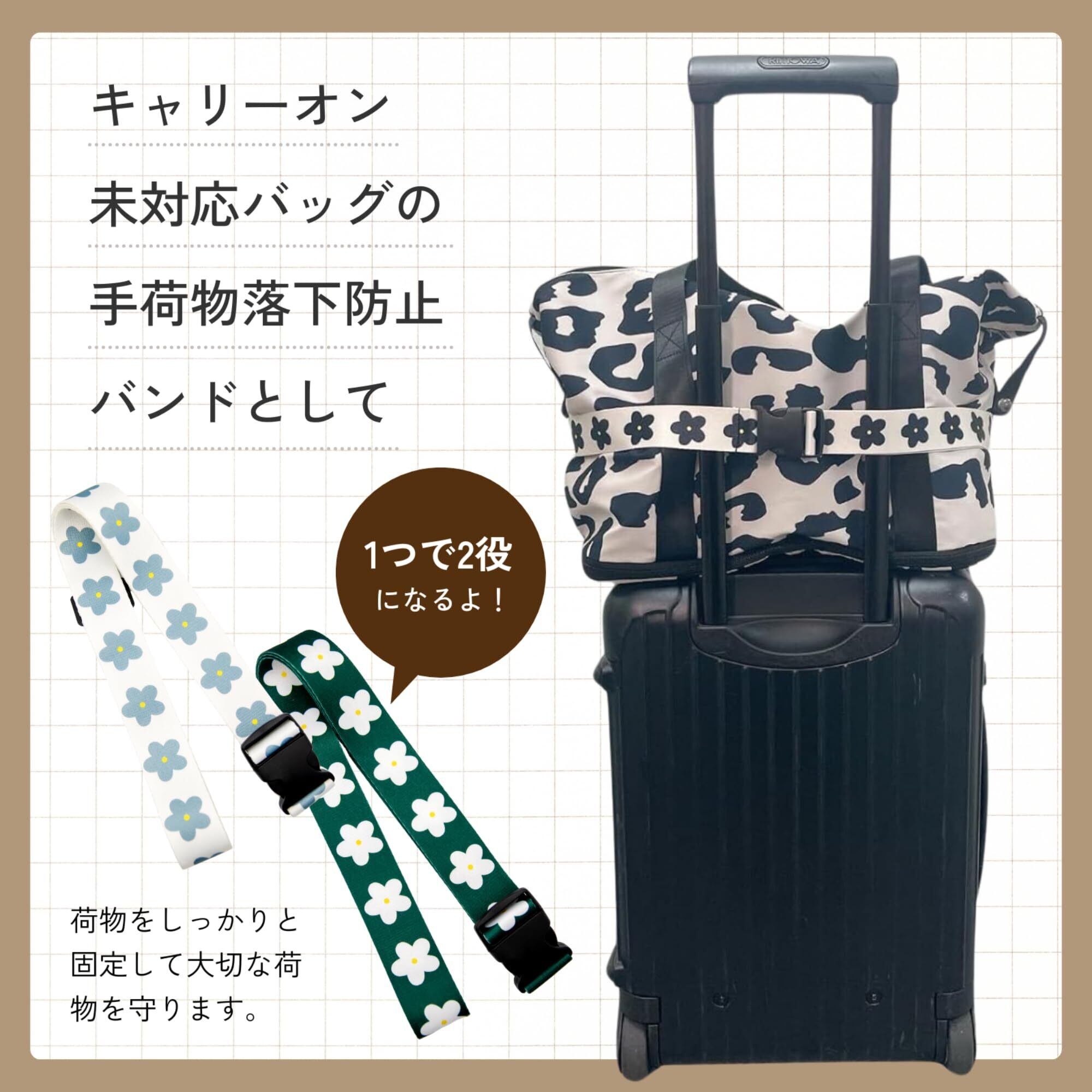 スーツケースと手荷物を留めるバンドとしても仕様可能