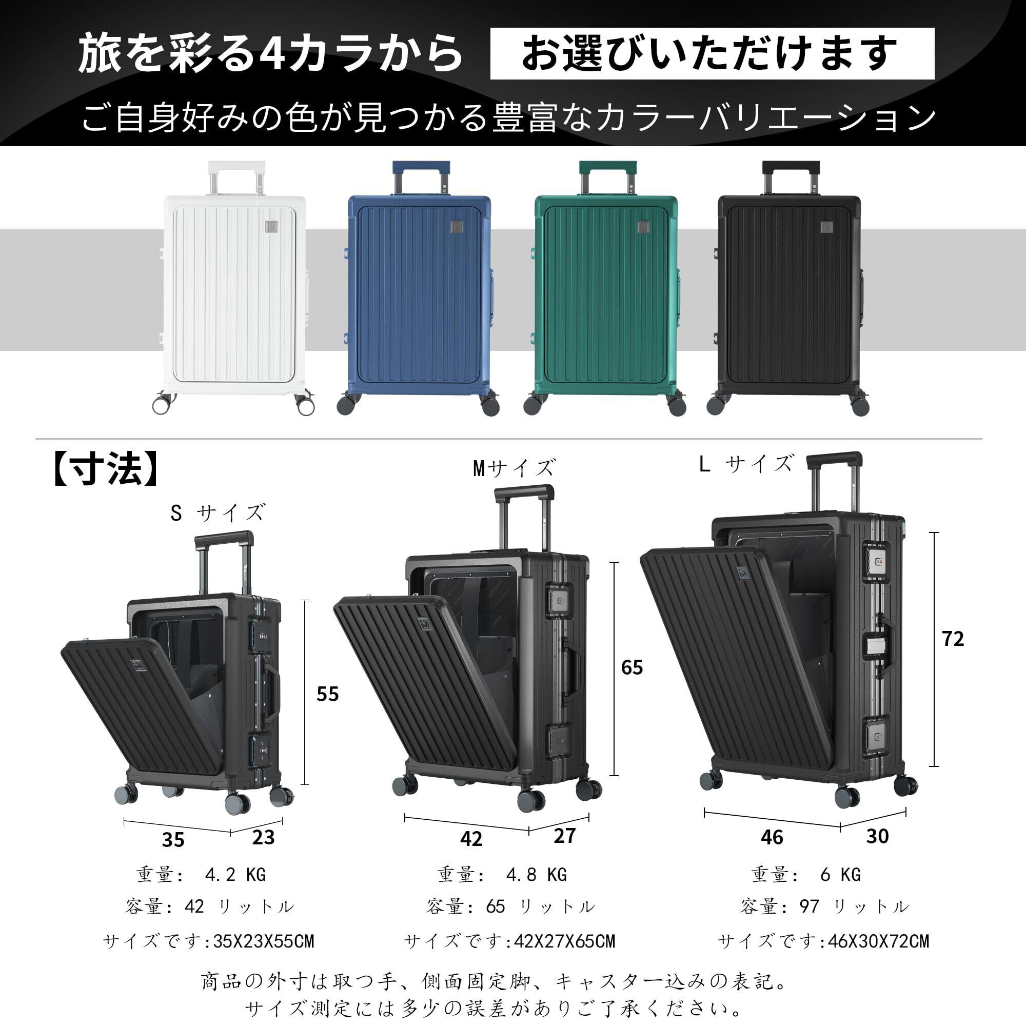 【在庫処分】スーツケース 機内持ち込み 多機能 フロントオープン キャリーケース ストッパー付き 携帯スタンド USBポート付き カップホルダー付き 隠しフック機能 超軽量 耐衝撃 静音 360度回転 ダブルキャスター アルミフレーム PC材質 大容量 TSAロック搭載 旅行 ビジネス 出張 (1-3泊 20インチ 42L ブラック)