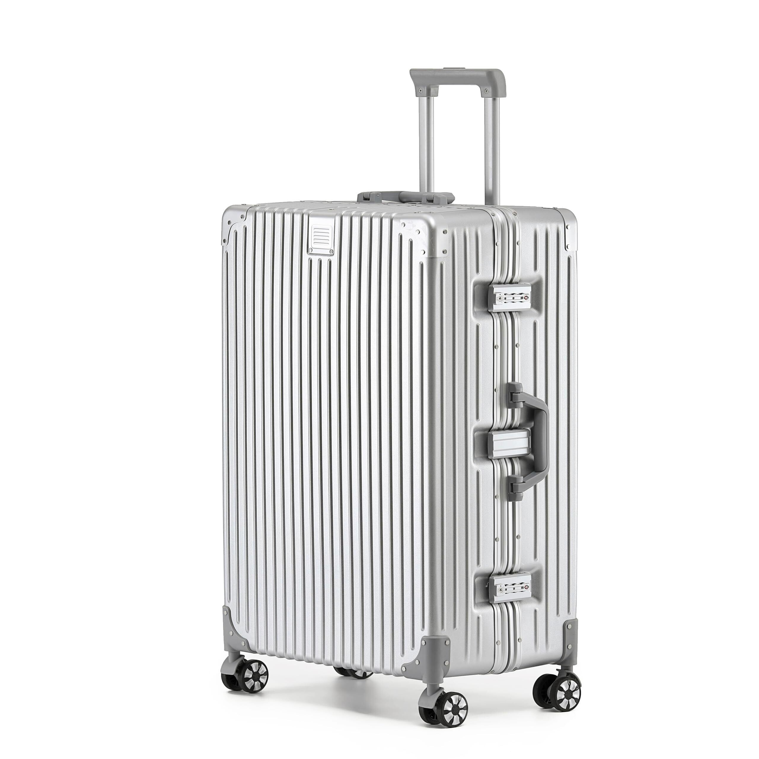 スーツケース キャリーケース キャリーバッグ 機内持ち込み 大型 アルミフレーム シルバー 超軽量 大容量 耐衝撃 TSAダイヤロック レトロ 360度回転 静音 ダブルキャスター 旅行 出張 XLサイズ 7泊から10泊 90L(5サイズ対応)
