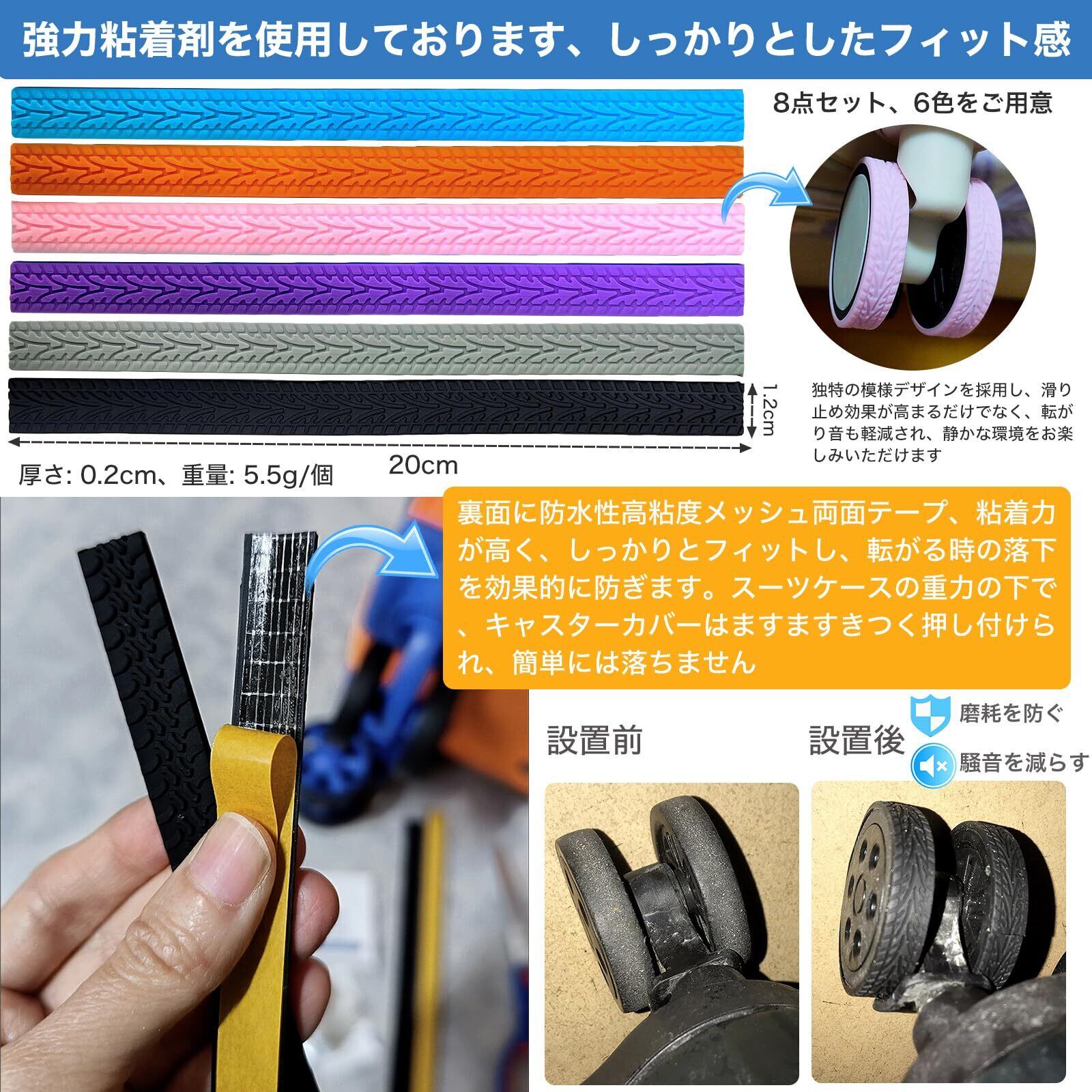 キャスターカバー 貼り付け型 8個セット 静音 シリコン タイヤカバー 強力粘着 騒音低減 簡単装着 汚れ キズ防止 防振 おしゃれ 旅行 ビジネス 出張用 キャリーケース スーツケースアクセサリー ダブル・シングル対応 直径6.2cmまで対応