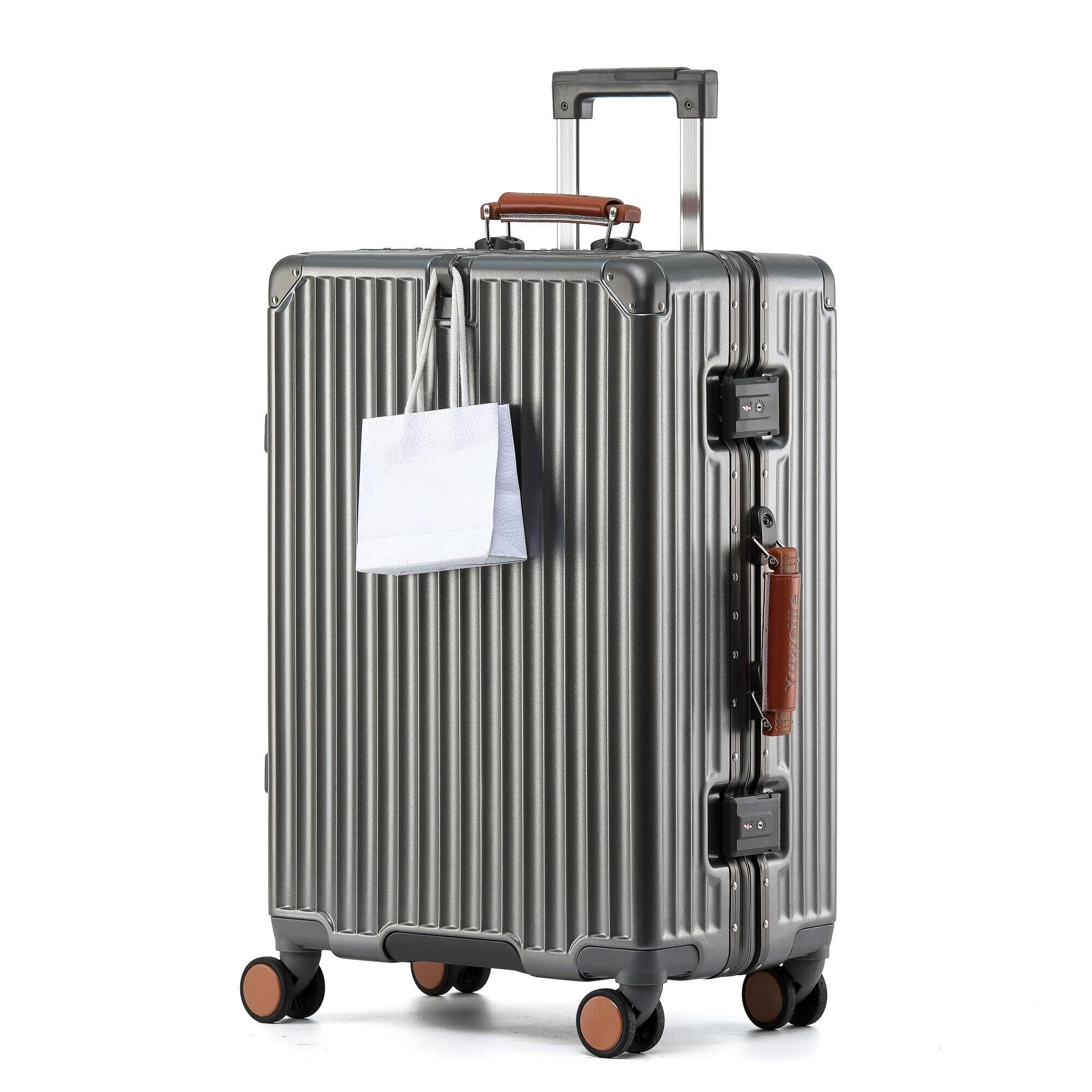新感覚!モダン!スーツケース キャリーケース 大型 軽量アルミフレーム式 キャリーバッグ 疲れない設計 おしゃれなハンドル 機内持ち込み 静音 ダブルキャスター TSAロック レトロ 入学 海外旅行出張 Lサイズ メタルグレー 7-10泊 70L