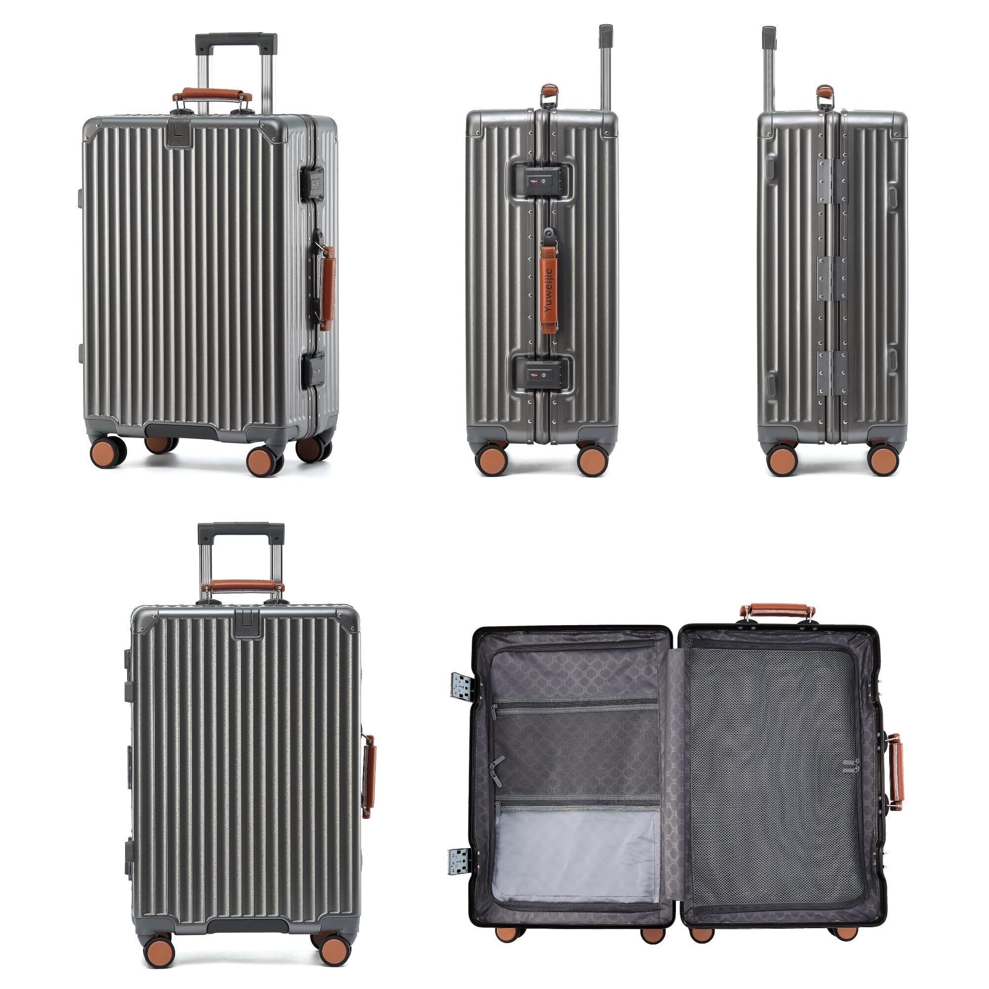 【新着商品】新感覚!モダン!スーツケース キャリーケース 大型 軽量アルミフレーム式 キャリーバッグ 疲れない設計 おしゃれなハンドル 機内持ち込み 静音 ダブルキャスター TSAロック レトロ 入学 海外旅行出張 Lサイズ メタルグレー 7-10泊 70L