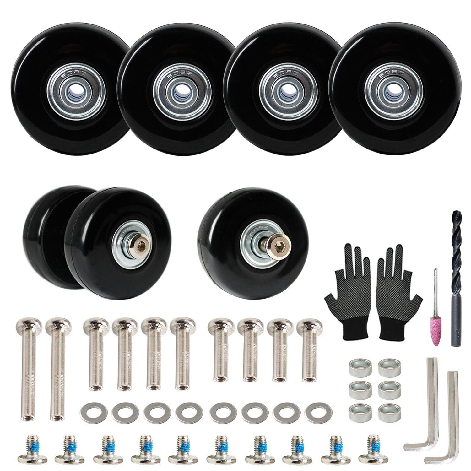 静音スーツケース キャスター 交換 サービス用交換ホイール ショッピン グカート スーツケース キャリーボックスなどの車輪補修用 ネジなどのパーツ工具付き 日本語説明書入 (直径50mm、車軸 30/35/60mm)