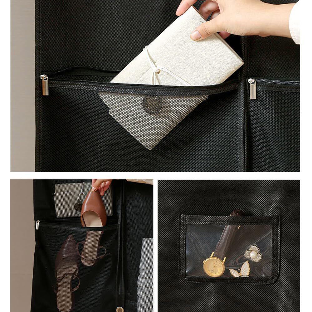 【透明窓とポケット付き】透明な窓が付いているデザインなので、ファスナーを開けずに欲しい服をすぐに見つけることができ、手間が省けます。サイズの異なる複数のポケットも付いており、靴、タオル、靴下などの衣類から腕時計、ジュエリーなどの小物まで収納できます。