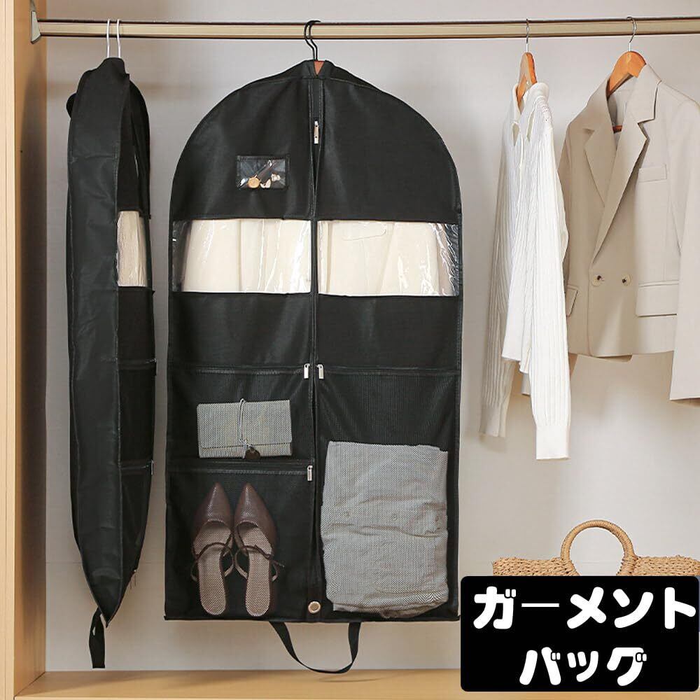 ガーメントバッグ スーツバッグ 透明窓付き 衣装バッグ スーツ カバー スーツ 持ち運び バッグ スーツ収納袋 ガーメントケース 服型崩れ防止 軽量 掛けやすい 防水 防塵 大容量 折りたたみ 季節替え 靴も入る 冠婚葬祭 ビジネス 出張 旅行 小物ポケット付き -S(110*60*10cm)