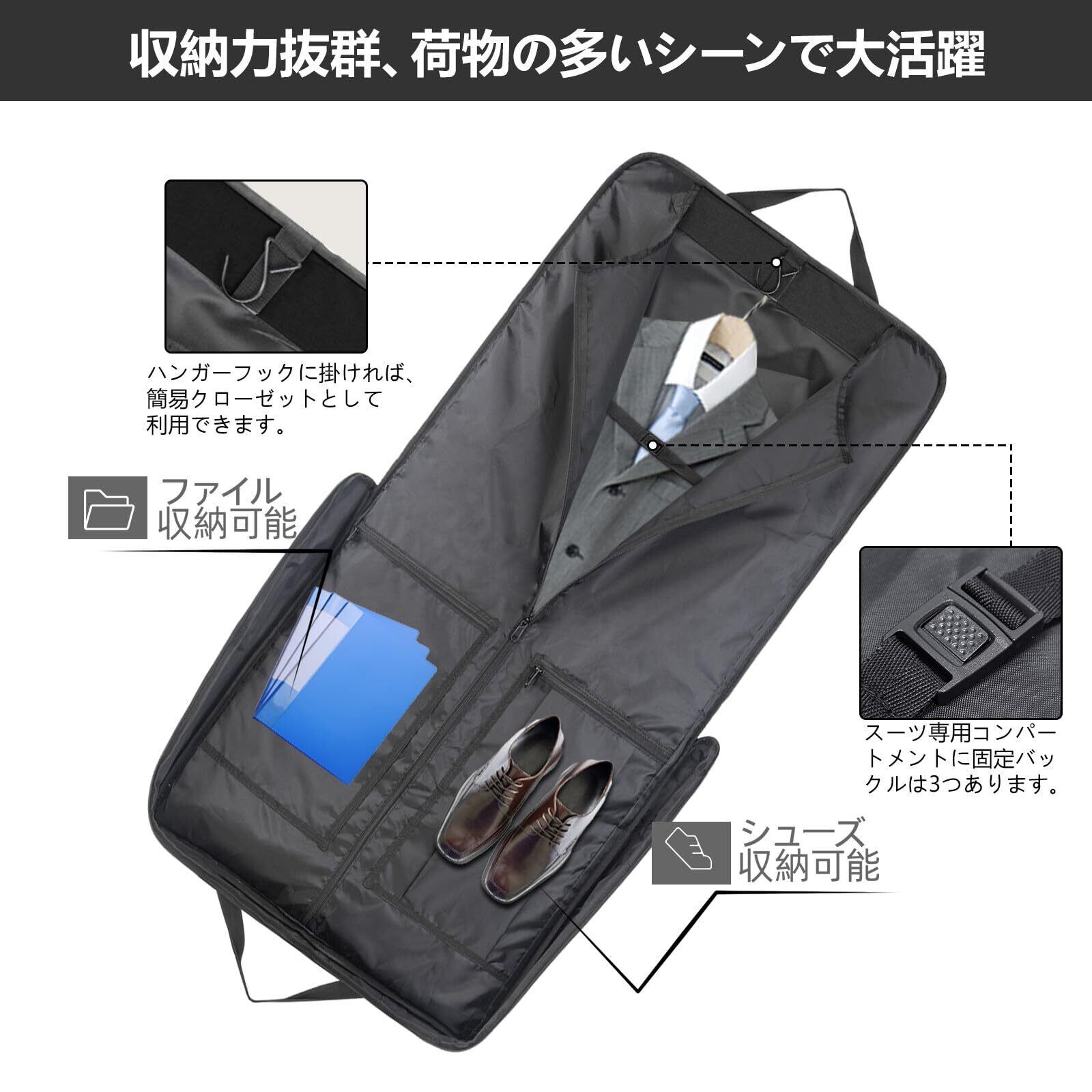 ※改良版です: ①背面に付きキャリーケース用固定ベルトの位置は低くなりました。ほとんどのスーツケースに適合しています。 ②スーツ収納部にはスーツ3着を収納可能になりました。