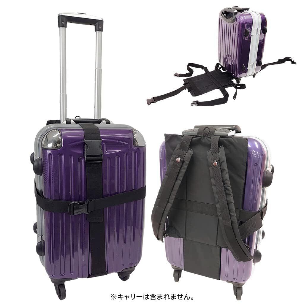 キャリーケースを押して歩くのに不便な場所や悪路階段の上り下り、自転車で移動の際に便利な商品です。 雪道旅行にや大雨の時など道路でキャリーバッグを引くのは大変です。そんな時にこの背負ベルトが活躍します。