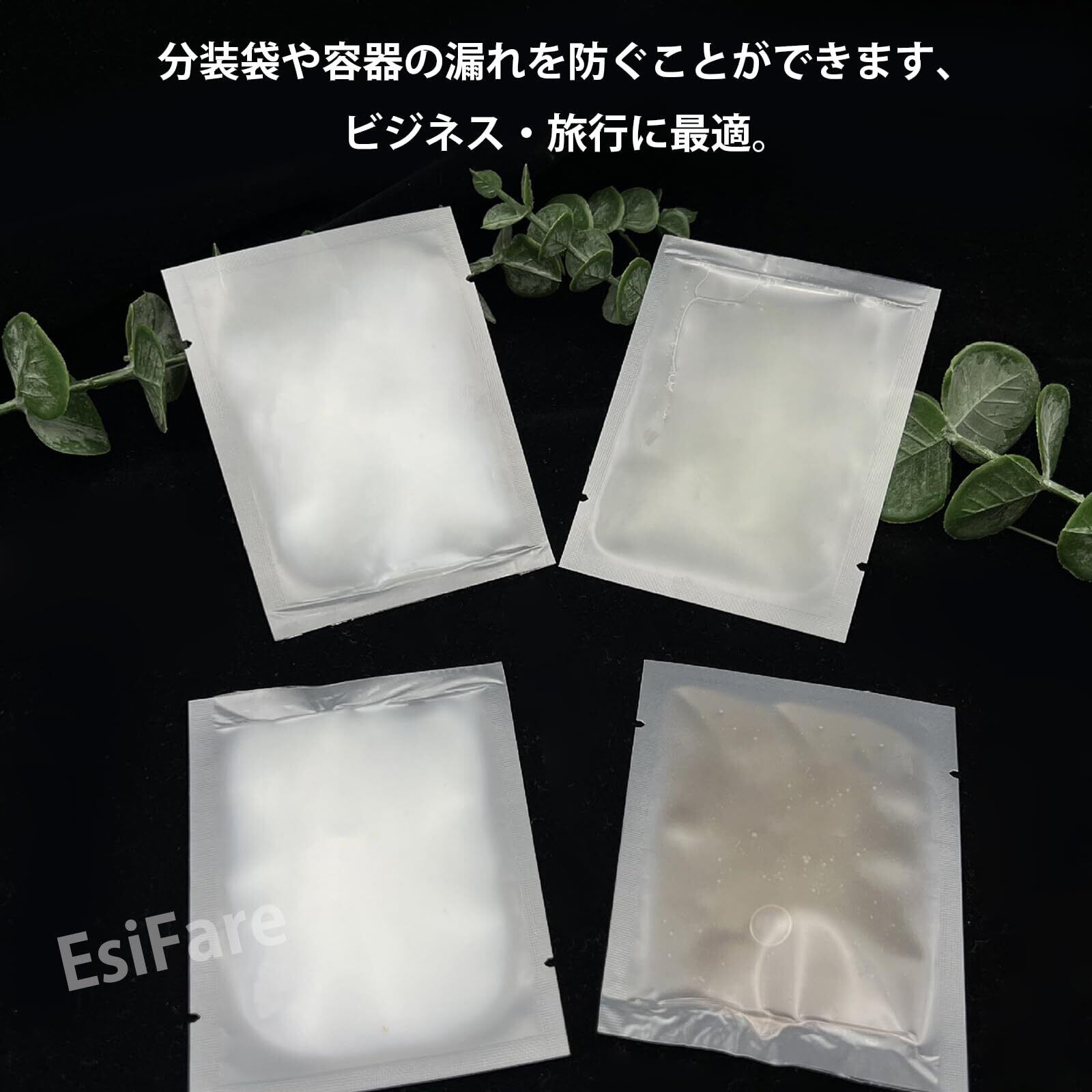 【密閉性が高い】このパウチ容器はストレートアイロンを用いて加熱密封されており、密閉性が高くなっています。分装袋や容器の漏れを防ぐことができます、ビジネス・旅行に最適。※使用するストレートアイロンなどの機器やキッチンペーパーの厚さなどにより、加熱時間は異なります。状況を見ながら加熱してください。※やけどには十分ご注意ください。
