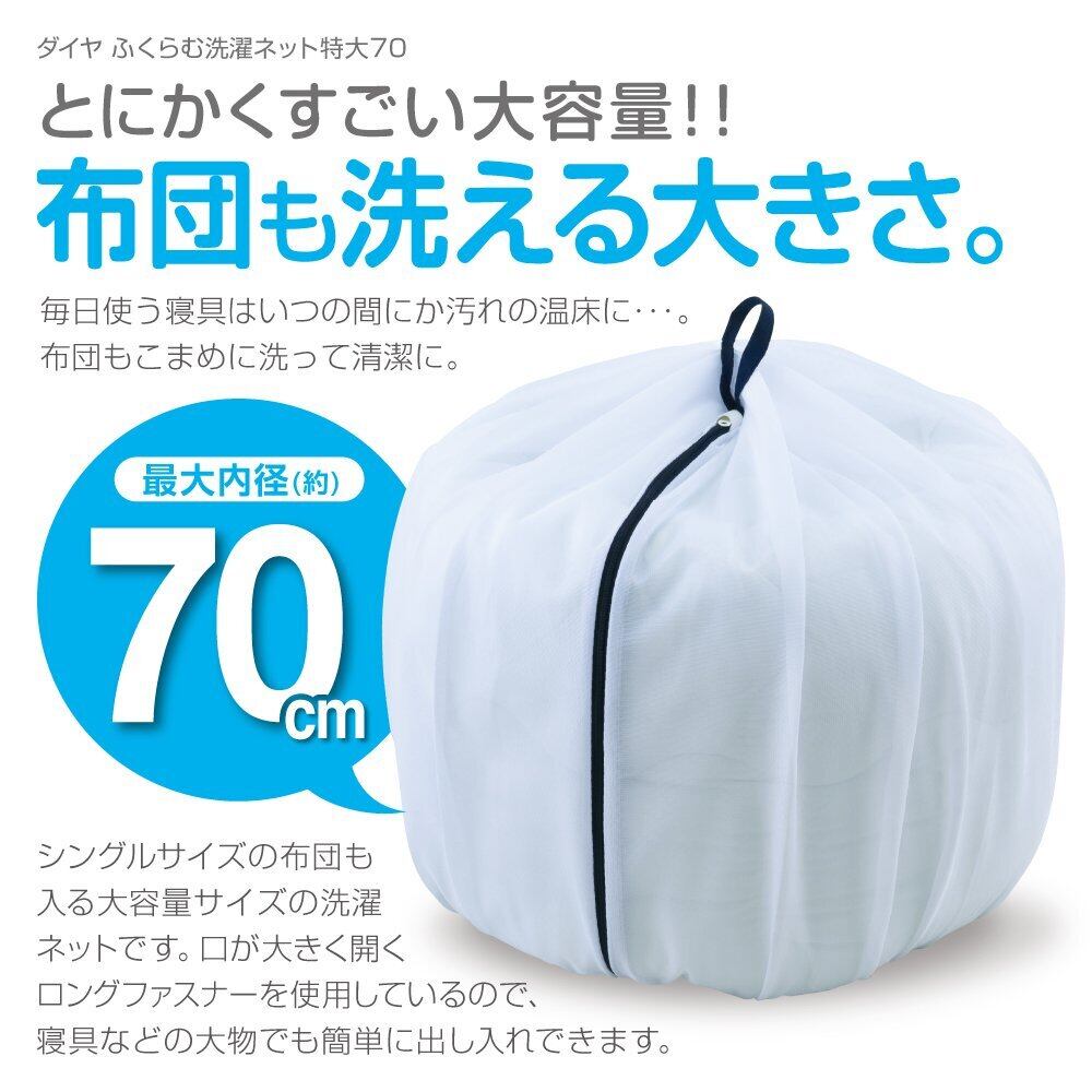 ダイヤ (Daiya) 洗濯ネット ランドリーネット 特大 ふくらむ洗濯ネット 特大70 布団が洗える 最大内径約70㎝ 乾燥機対応 コンパクト収納 布団 毛布 寝具 まとめ洗い 057235 ポリエステル ホワイト
