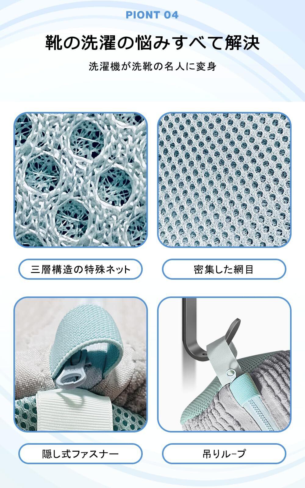 【Model SN2026|クッション構造で衝撃・騒音を軽減】 Model SN2026は、ネット全体に厚手のクッション材を内蔵し、洗濯中のドラムの衝撃や音をやわらげる静音設計。靴の形を崩さず、他の洗濯物や洗濯槽を傷つけにくい設計です。外側は粗めメッシュ生地で水流がしっかり通り、頑固な汚れにも対応。さらに、素材自体の耐久性も高く、10,000回以上の使用に耐える構造となっています。