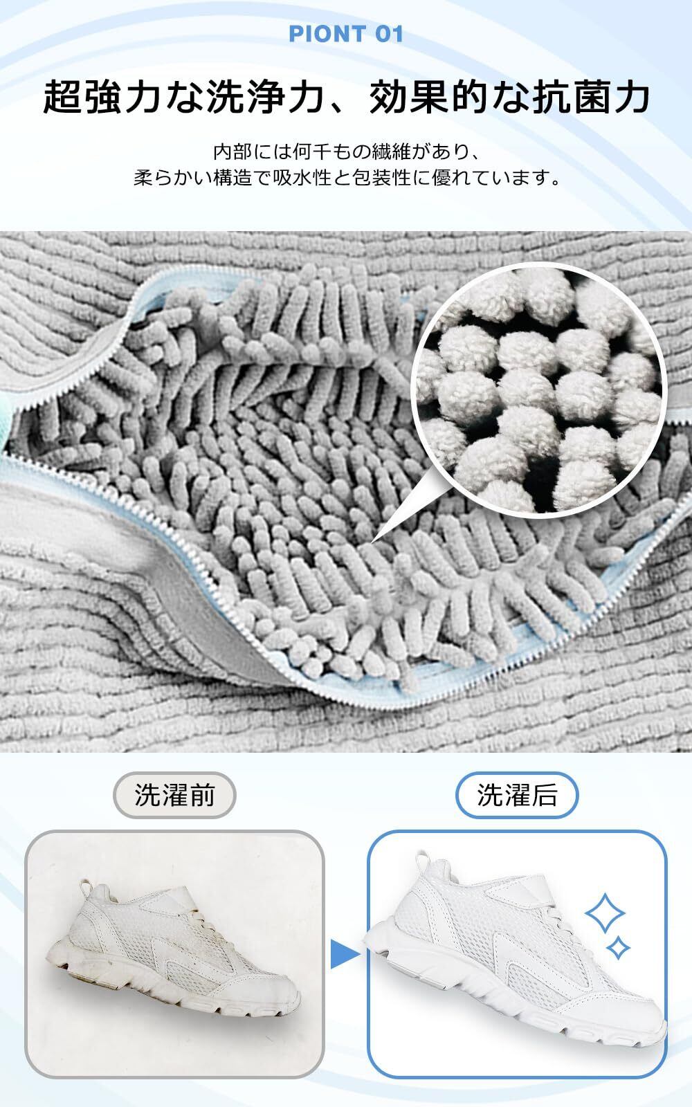 【Model SN2026|10,000本の毛羽繊維で強力洗浄】 Model SN2026は内部に10,000本以上の極細毛羽繊維を採用し、靴全体を包み込むようにフィット。ハンドブラシを再現した毛柱構造で、凹凸部分の汚れまでしっかり落とします。高通気性で洗剤や水がしっかり行き渡り、第三者試験機関の洗浄力テストにも合格。毎回の洗濯で安定した洗浄効果を発揮します。