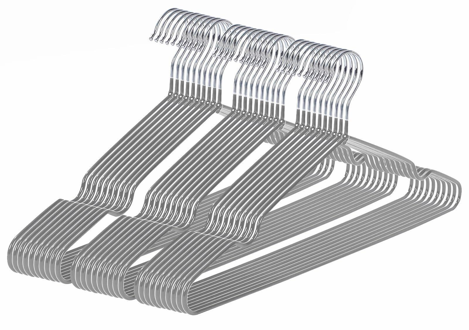 【省スペースハンガー】厚さ0.3cmほどの薄型なので、このハンガーを使用して収納すると一般的なハンガーを使用した際よりも50%程度省スペースになります。統一感もでて、クローゼットの中がすっきり気持ちよく整います。