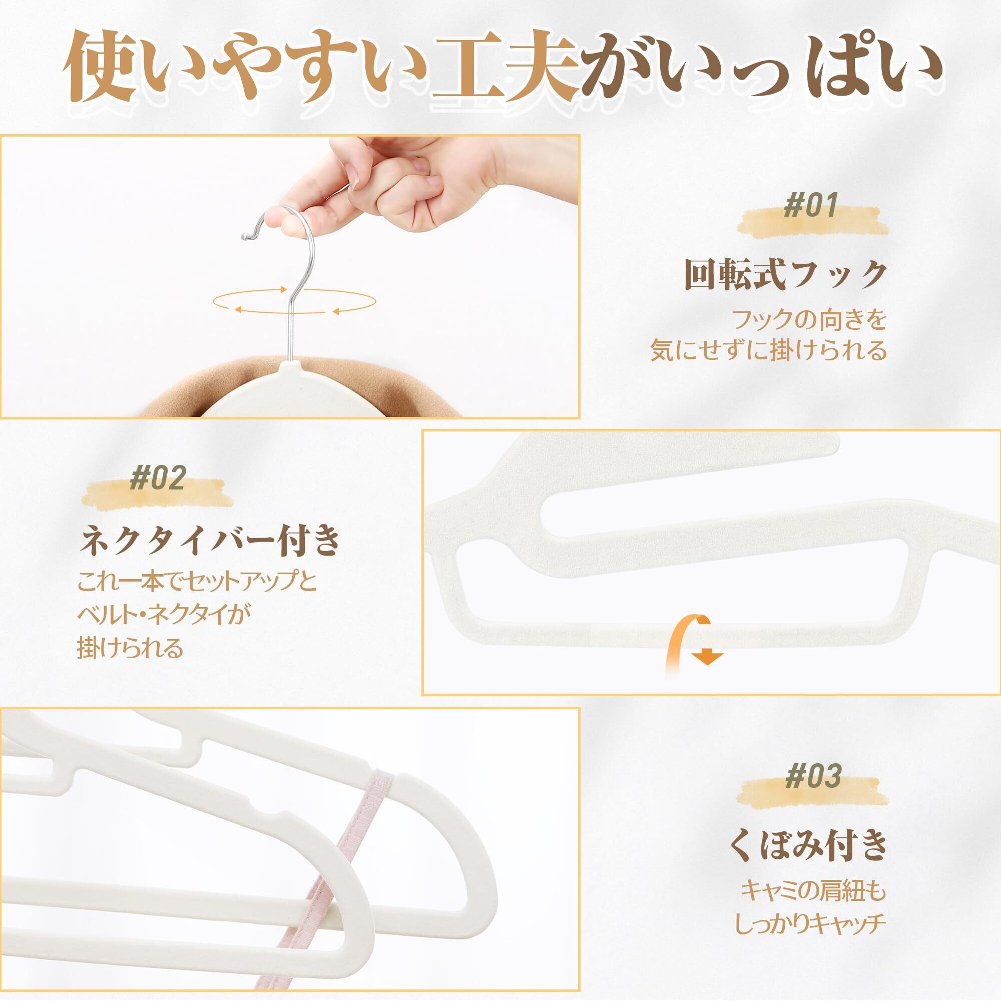 チチロバ(TITIROBA) ハンガー すべらない かたくずれ防止 襟が伸びない 伸び防止 ベルベット製 30本組 アイボリー 23AB208