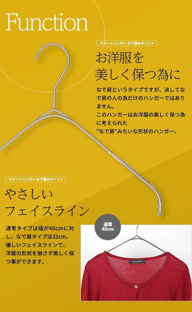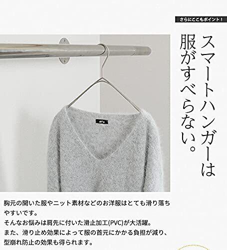 【2022最新】タヤ ハンガー シャツ ニット キャミソール用 スマートハンガーなで肩/1本 パールニッケル プロ仕様 W32cm軽量 すべらない 1/2ビニールコーティング加工 シンプル おしゃれ 収納 省スペース フック固定