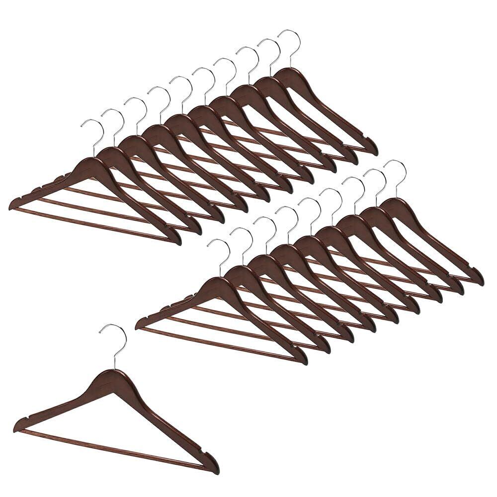 タマトシ 木製 ハンガー フック 360度回転 ジャケット コート 着物 天然 高級 木 おしゃれ 店舗 収納 シャツ ジャケット用 バー付き 42cm幅 20本組 アンティークブラウン