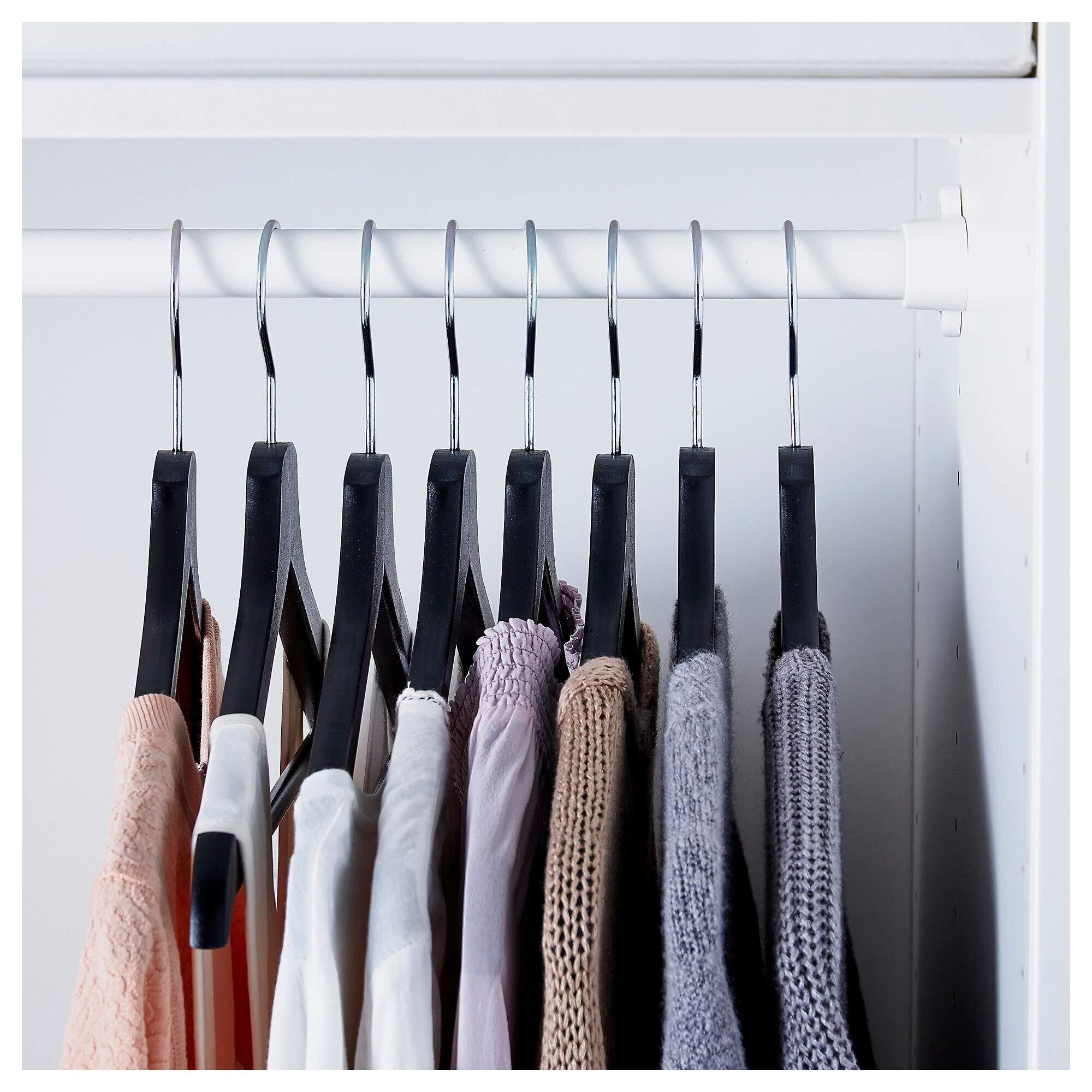 IKEA(イケア) BUMERANG/ブメラング 木製無垢材洋服ハンガー 肩部分凹み スーツ・ジャケット・キャミソール向け (2セット(16本), ブラック)