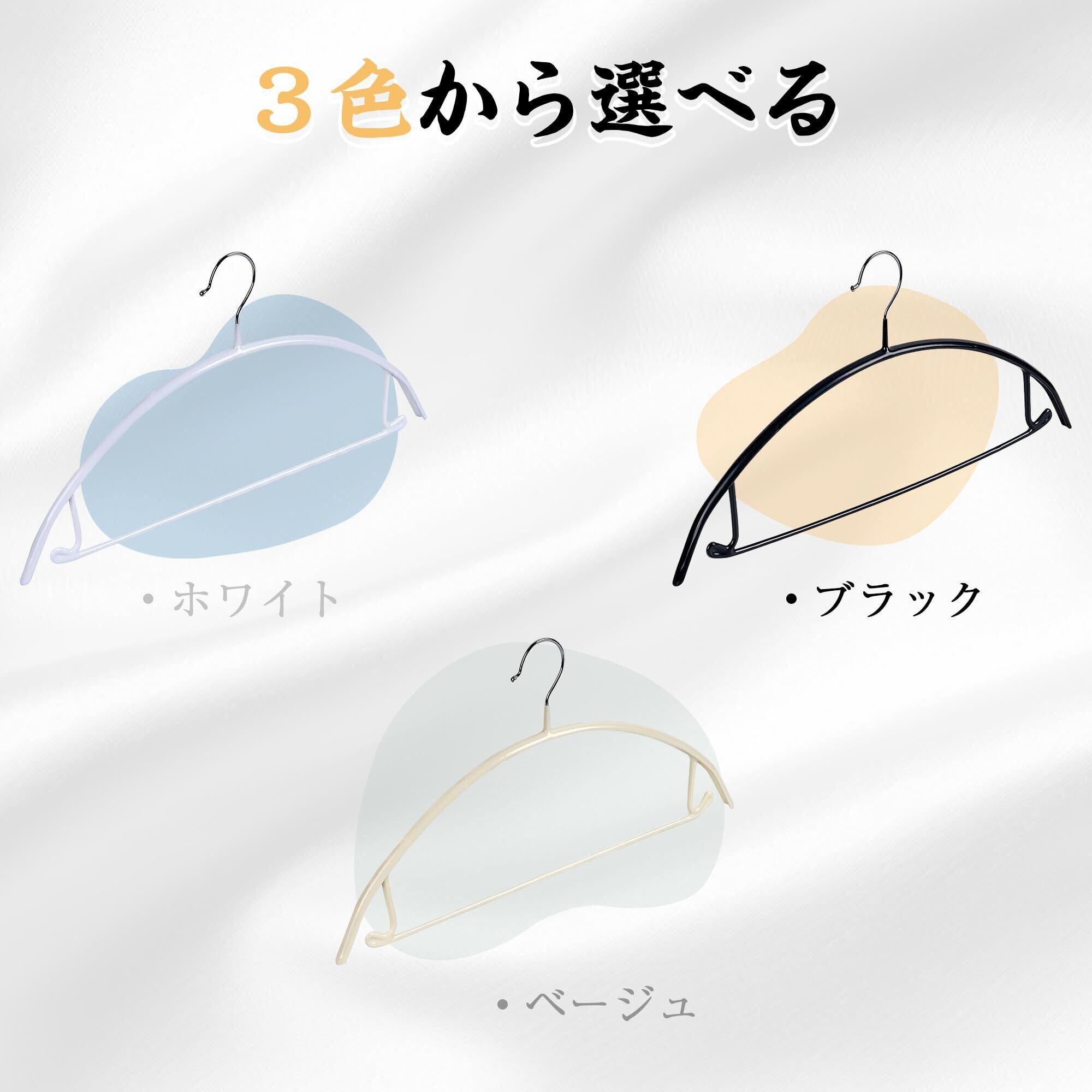 【すべらない】特殊な滑り止めコーティングにより、衣類を掛けても滑り落ちる心配がありません。コート、シャツ、キャミソール、スカート、スーツ、ズボンなど幅広い衣類に対応し、厚手のコートや繊細なキャミソールもしっかりと保持します。日常使いにも安心してご利用いただけます