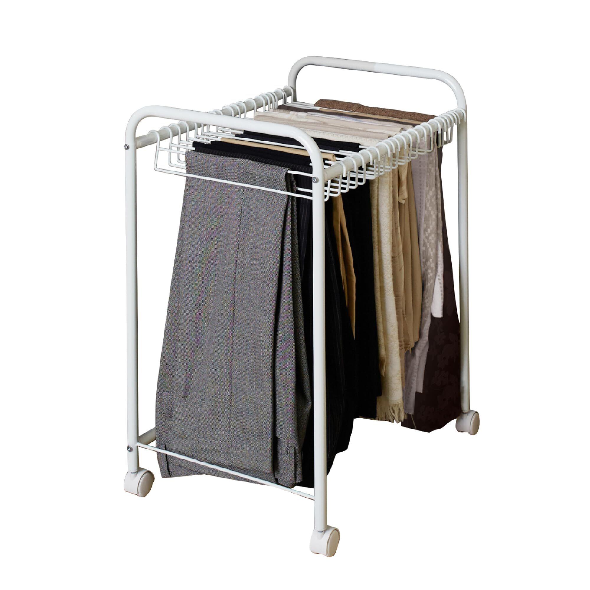 横幅43cmのコンパクトサイズで、最大20着までのズボンやスラックスを収納できる、便利なボトムスハンガー。