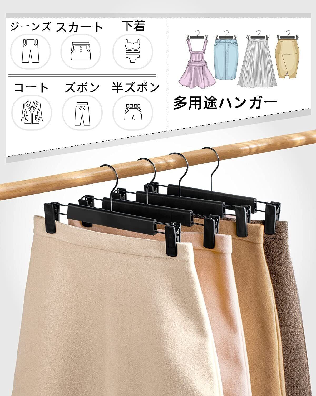 【多機能収納ハンガー】ズボンハンガーのクリップは移動できて、ズボン、スカート、タオル、ネクタイ、ストール、靴下などの収納にも適応します。 優れた耐荷重力があるので、外干しにも使えます。