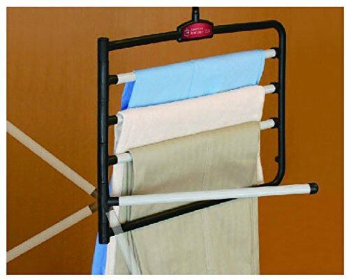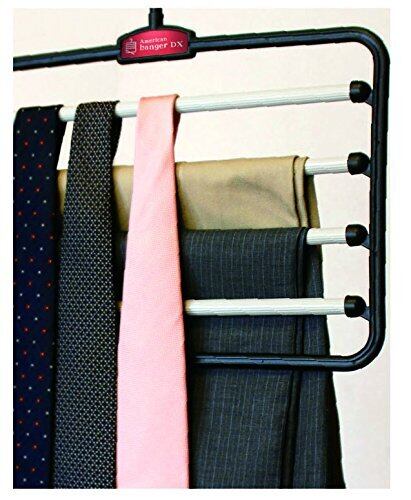 ○スラックス4本を1本分のスペースで効率よく収納できます。 ○スラックスバーは片側を軸にスイングしますので、スラックスを簡単に横から抜き取る事が出来ます。 ○スラックスが滑り落ちにくい特殊加工バーを採用。 商品サイズ : 368×365mm 厚さ : 18mm 本体・フック・キャップ : ポリプロピレン バー : 塩化ビニル樹脂 生産国 : 中国