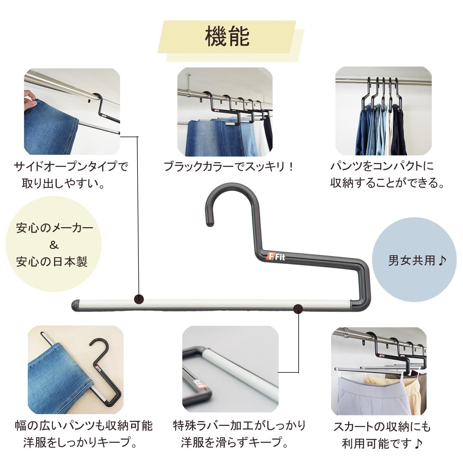 【在庫処分】ベーシック スラックスハンガー10本セットF-Fitストップバー10本セット|スラックス パンツ ズボン マフラー ストール すべらない スリム スカート ブラック 収納 衣類 洋服 洗濯 スーツ すべり止め すべりどめ クローゼット 押入れ 物干し クローゼット 8000182
