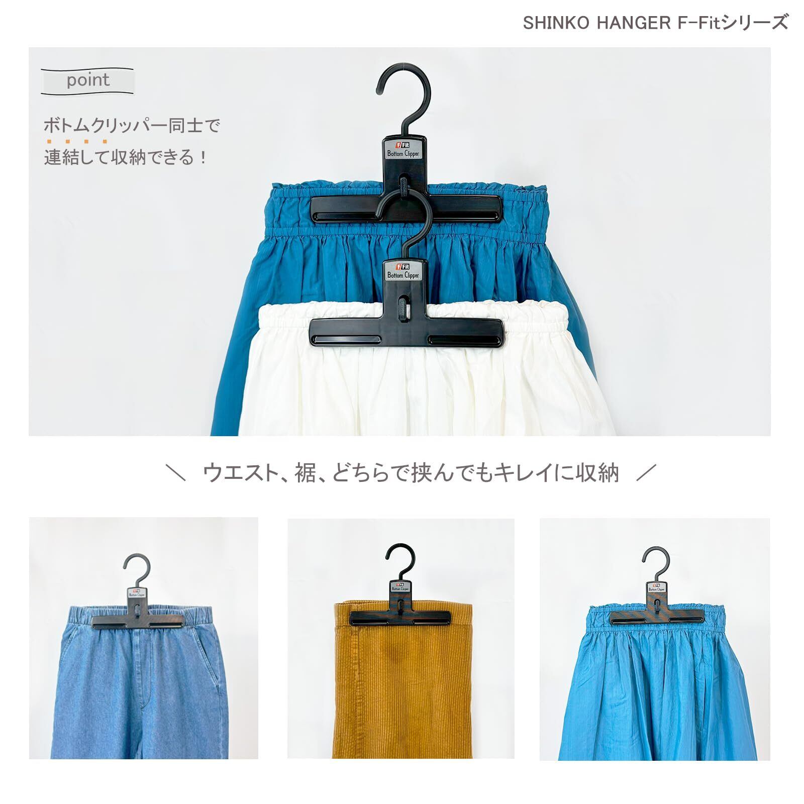 シンコハンガー(Shinkohanger) 衣類用ハンガー F-Fit ボトムクリッパー 6個セット ブラック 日本製 ラック ズボン ピンチ 洗濯 タオル スラックス バスタオル ネクタイ 頑丈 かたくずれ防止 物干し スカート パンツ 押し入れ 収納 コート スーツ 01248